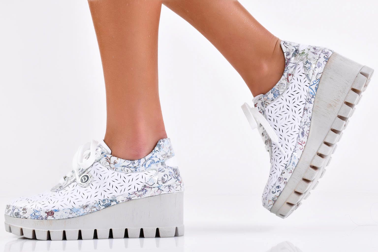 Имаме удоволствието да Ви представим нов модел дамски обувки на платформа EOBUVKIBG 502-6397 в бял цвят изработени изцяло от естествена кожа. Стелката е мека анатомична и комфортна,изработена изцяло от сатен. Модела е с връзки които улесняват обуването. Ортопедичната “дишаща” стелка е гарант за мекота и оптимална опора за свода на стъпалото, поддържайки го в правилната позиция при продължително ходене.Характеристика:Материал:Естествена кожа. Височина на платформата отпред: 2,5 см. Височина на платформата в задната част 5,5 см. Цвят: Бял. Номерация:36-40 Тегло на модела 37 размер : 292 грама. Моделът е стандартен и отговаря на размерите.