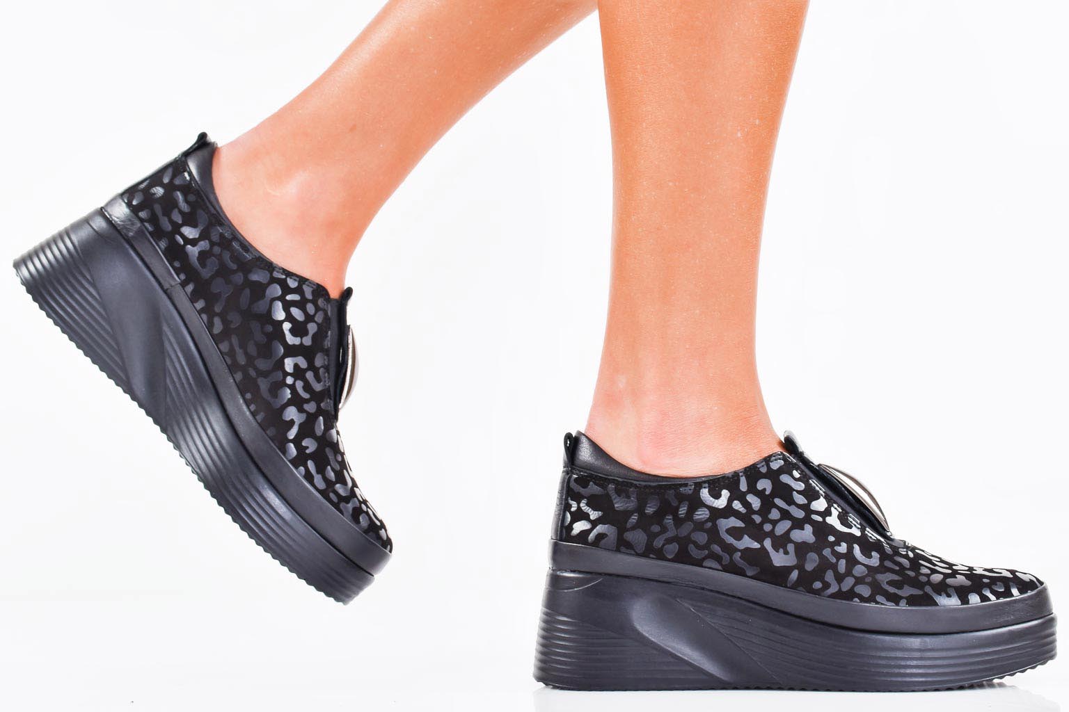 Дамски сникърси естествена кожа черни EOBUVKIBG #502-7062
