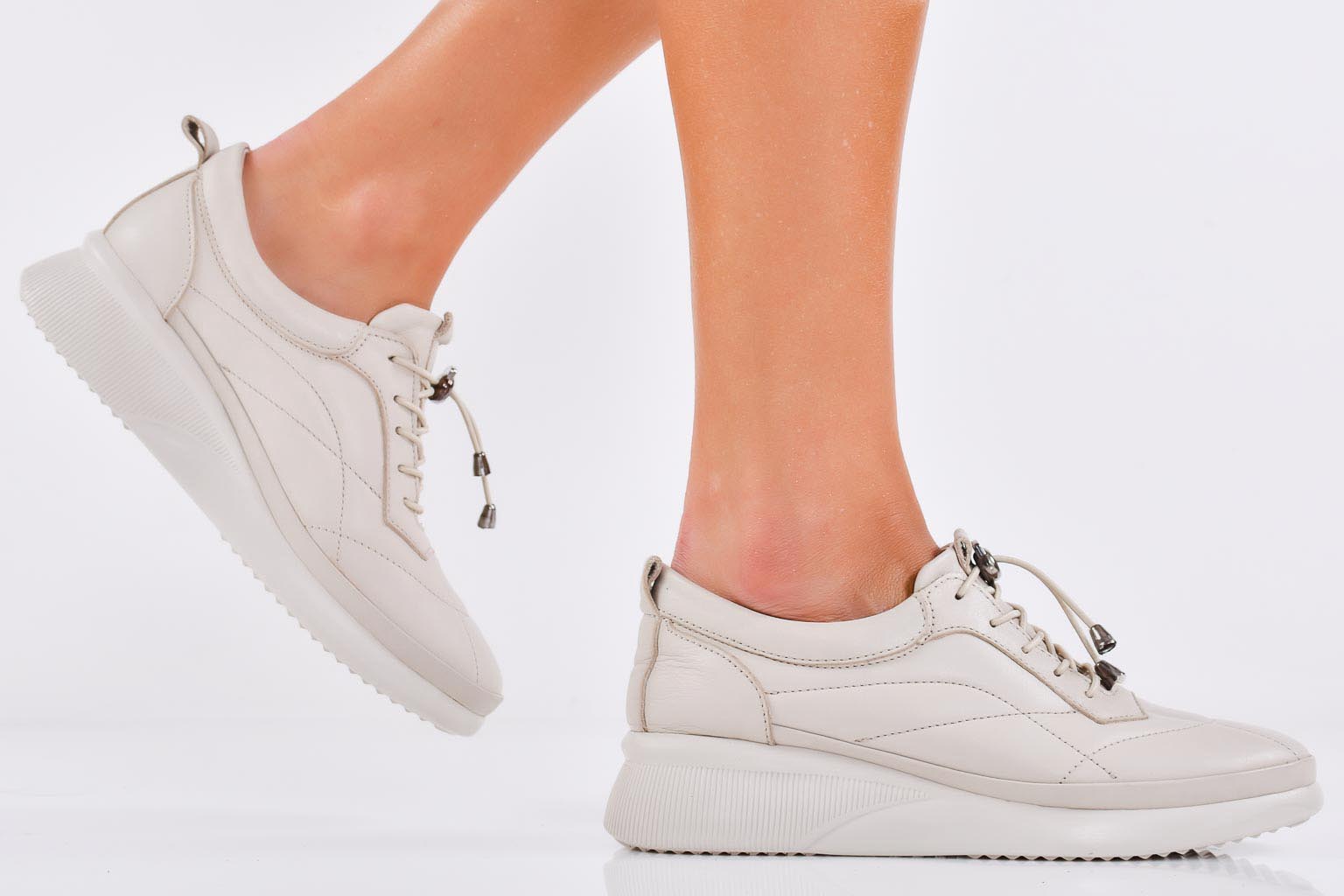Имаме удоволствието да Ви представим нов модел дамски обувки EOBUVKIBG 502-7022 изработени изцяло от естествена кожа. Стелката е мека анатомична и комфортна,изработена изцяло от естествена кожа.Модела е с ластачни връзки който улесняват обуването. Вътрешна част – естествена кожа. Ортопедичната “дишаща” стелка е гарант за мекота и оптимална опора за свода на стъпалото, поддържайки го в правилната позиция при продължително ходене. Височина на платформата отпред: 1,5 см. Височина на платформата в задната част 4 см. Цвят: Бежов. Номерация:36-40 Моделът е стандартен и отговаря на размерите.Тегло на модела 37 размер : 235 грама.