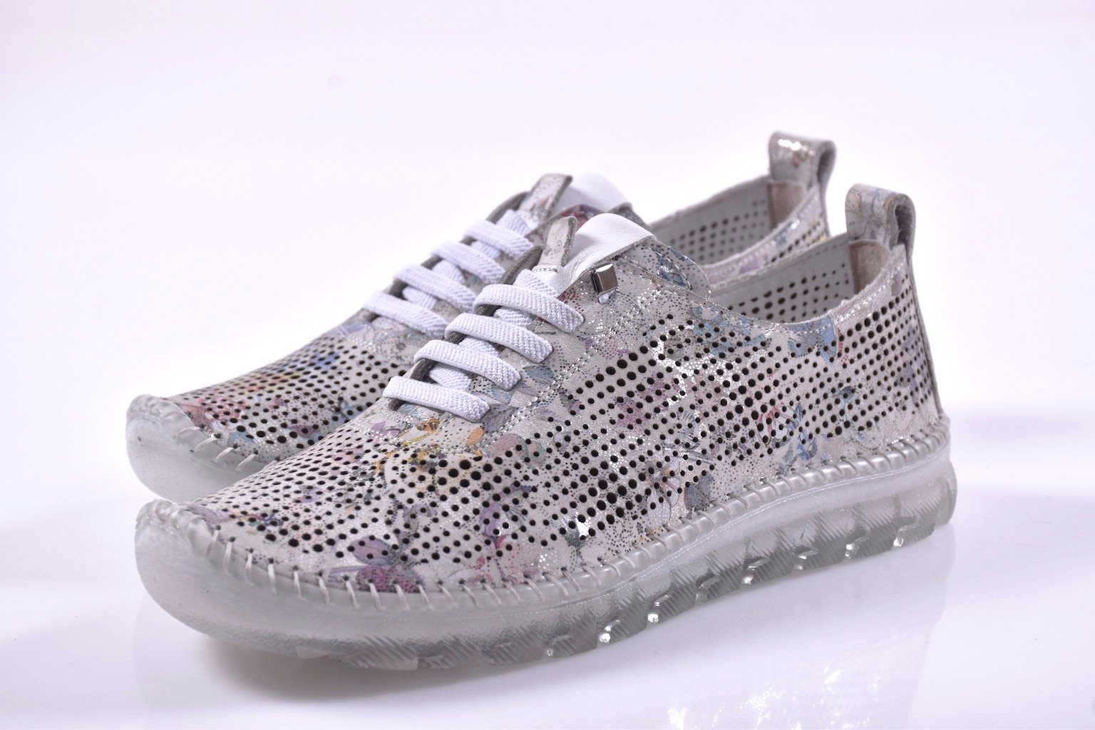 Имаме удоволствието да Ви представим нов модел дамски обувки EOBUVKIBG 502-7695 изработени изцяло от естествена кожа. Стелката е мека анатомична и комфортна,изработена изцяло от естествена кожа.Модела е с ластачни връзки който улесняват обуването. Вътрешна част – естествена кожа. Ортопедичната “дишаща” стелка е гарант за мекота и оптимална опора за свода на стъпалото, поддържайки го в правилната позиция при продължително ходене. Височина на платформата отпред: 2 см. Височина на платформата в задната част 3 см. Цвят: Бял. Номерация:41 Моделът е стандартен и отговаря на размерите.Тегло на модела 37 размер : 284 грама.