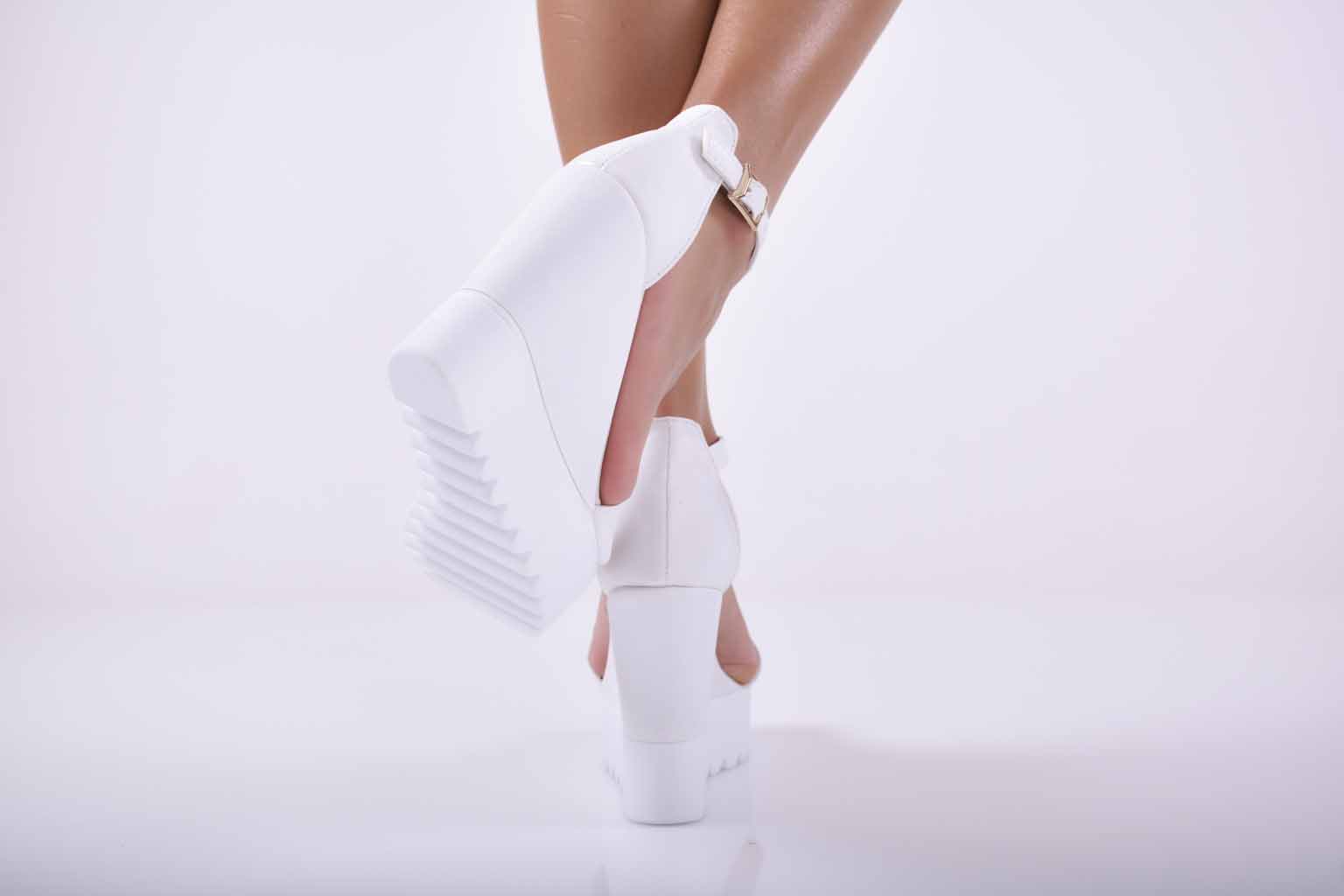 Дамски сандали на платформа бели EOBUVKIBG #501-1795