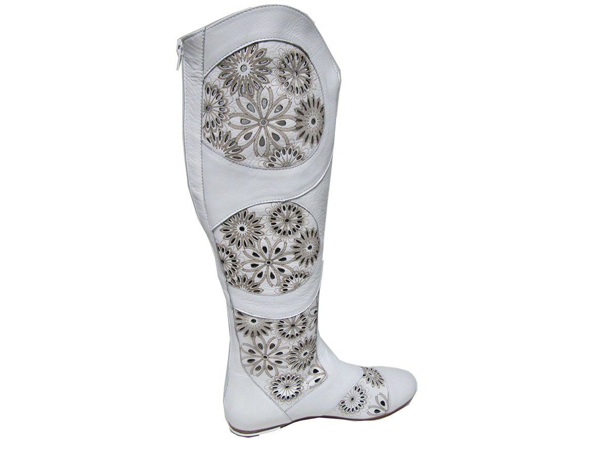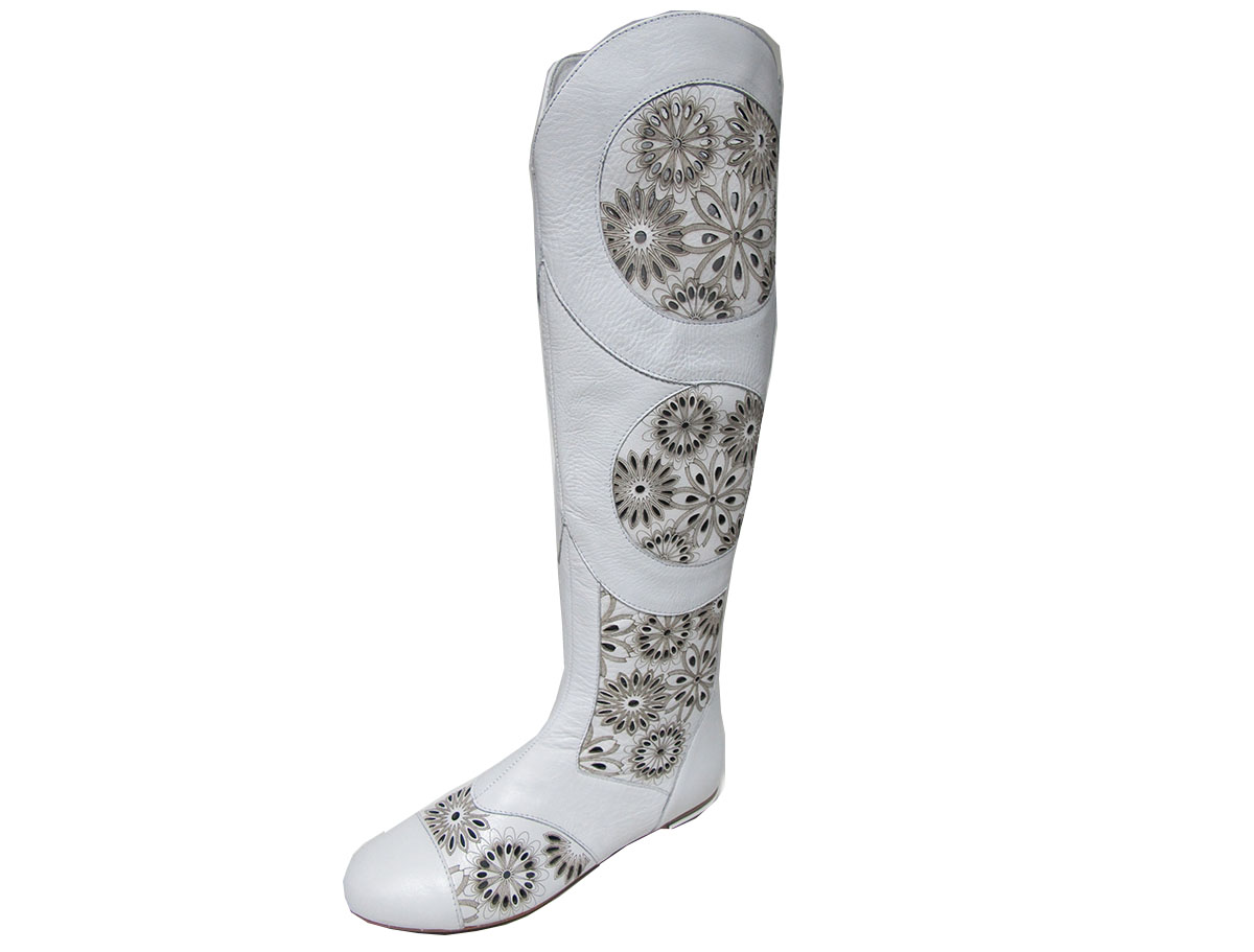 Характеристика: Материал: естествена кожа . Височина на ботуша от ходилото догоре - 42см Цвят:Бял Номерация:36-40