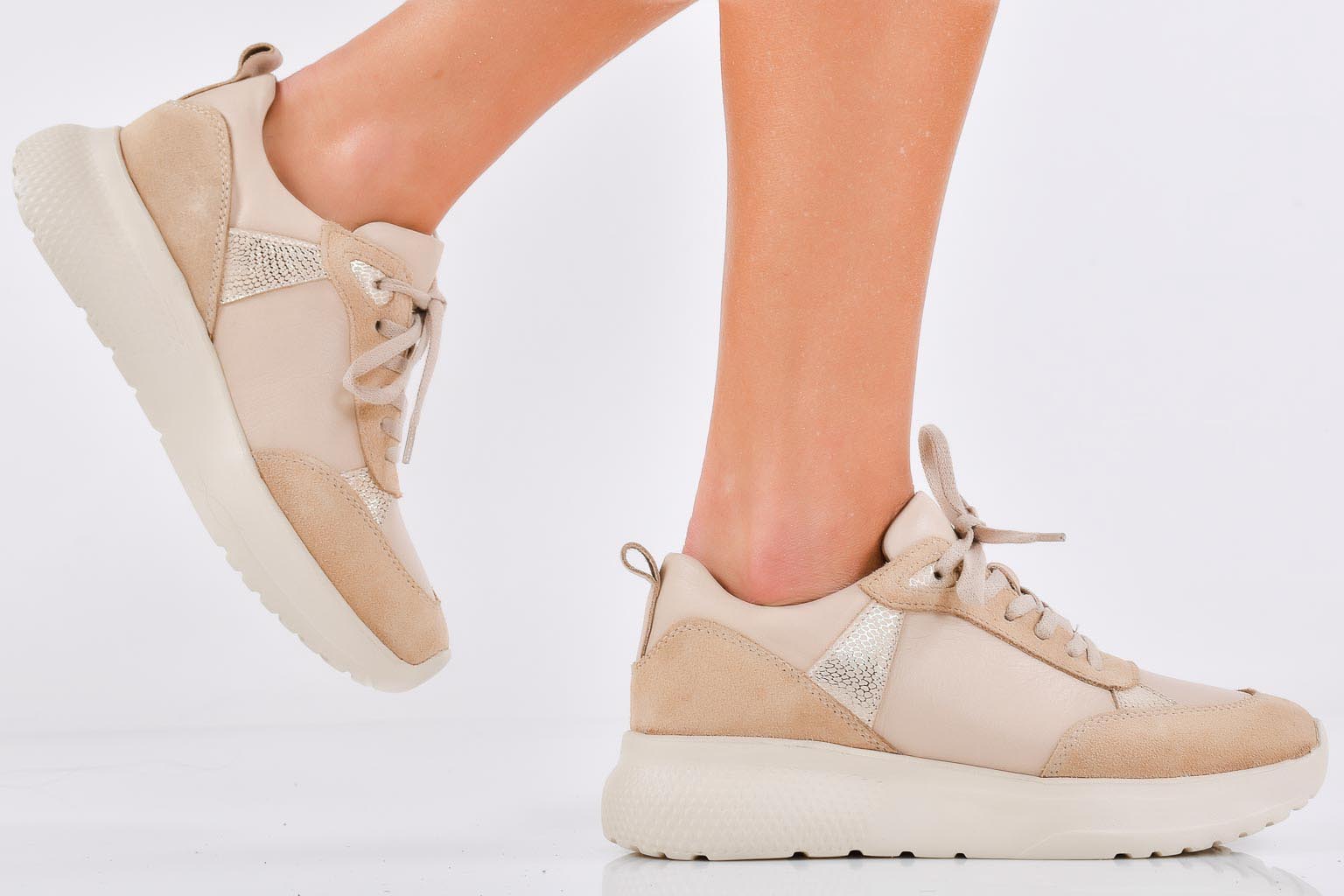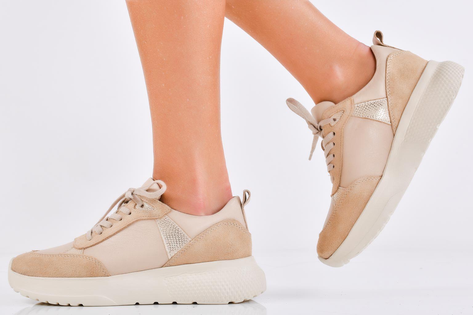 Дамски сникърси естествена кожа бежови EOBUVKIBG #502-7017