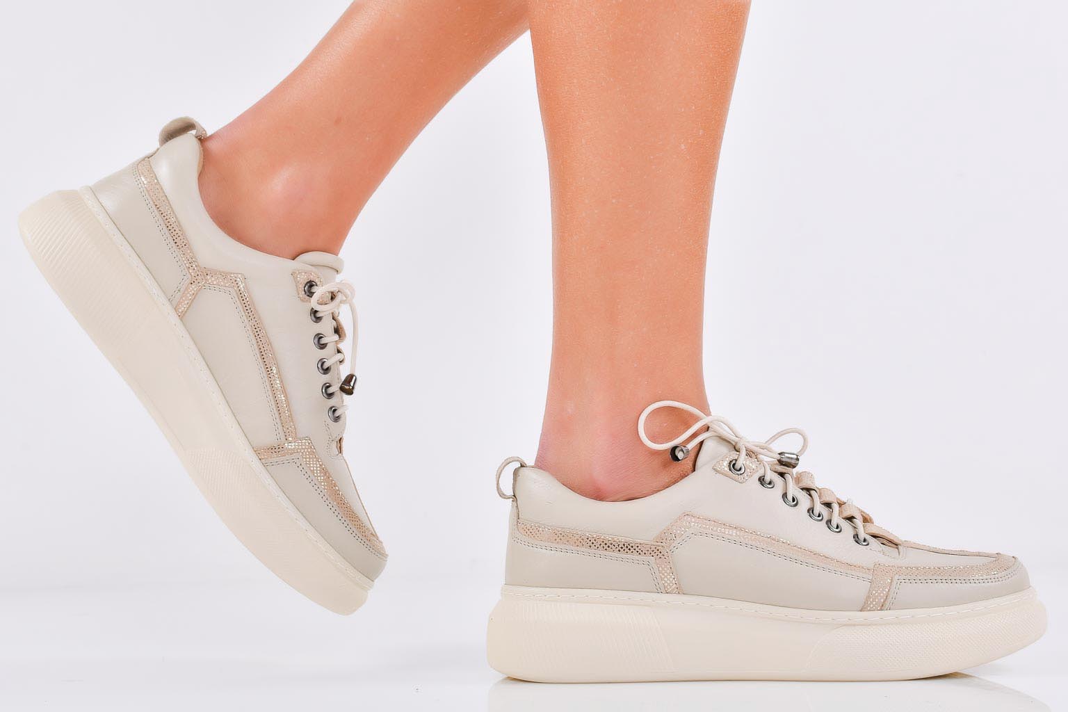 Дамски сникърси естествена кожа бежови EOBUVKIBG #502-7080