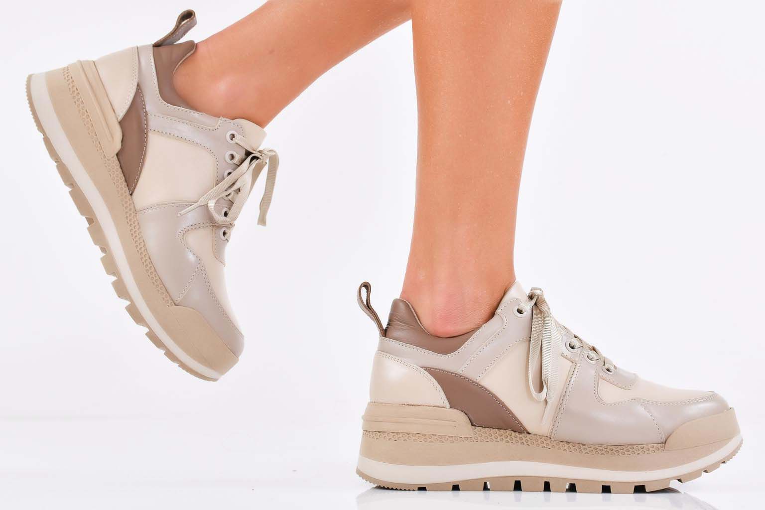 Дамски сникърси естествена кожа  бежови EOBUVKIBG