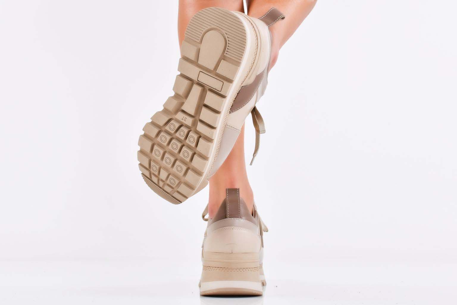 Дамски сникърси естествена кожа бежови EOBUVKIBG #502-7216