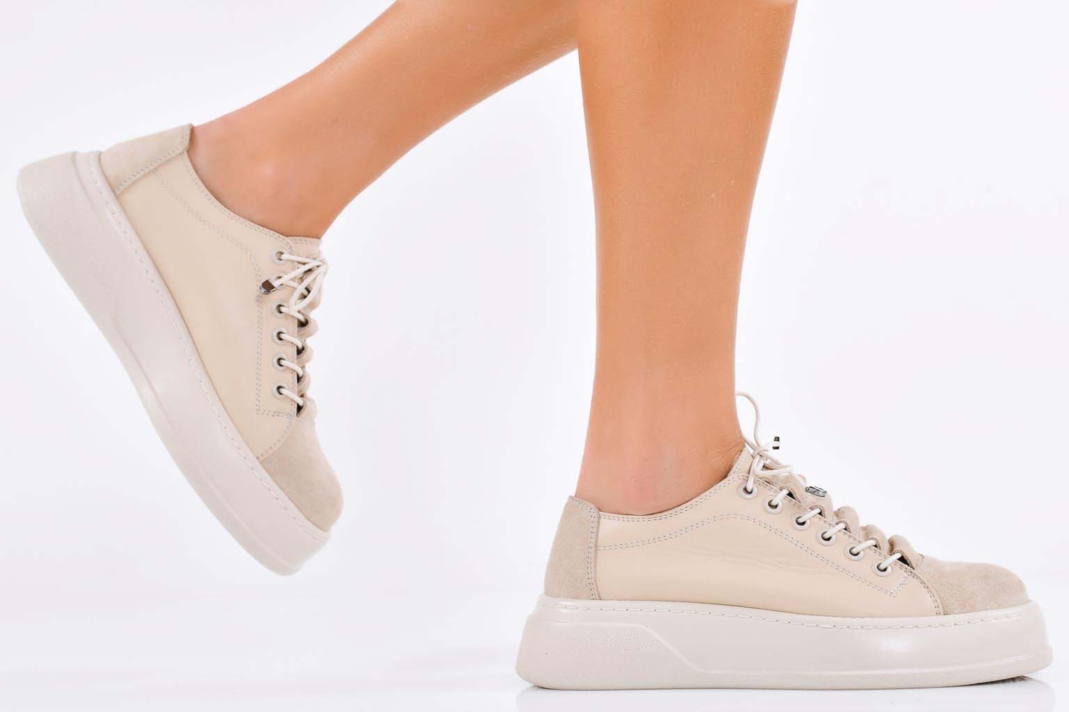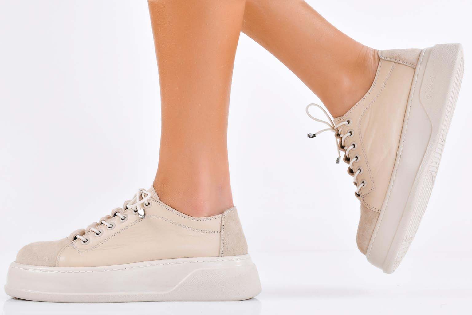 Дамски сникърси естествена кожа бежови EOBUVKIBG #502-7580