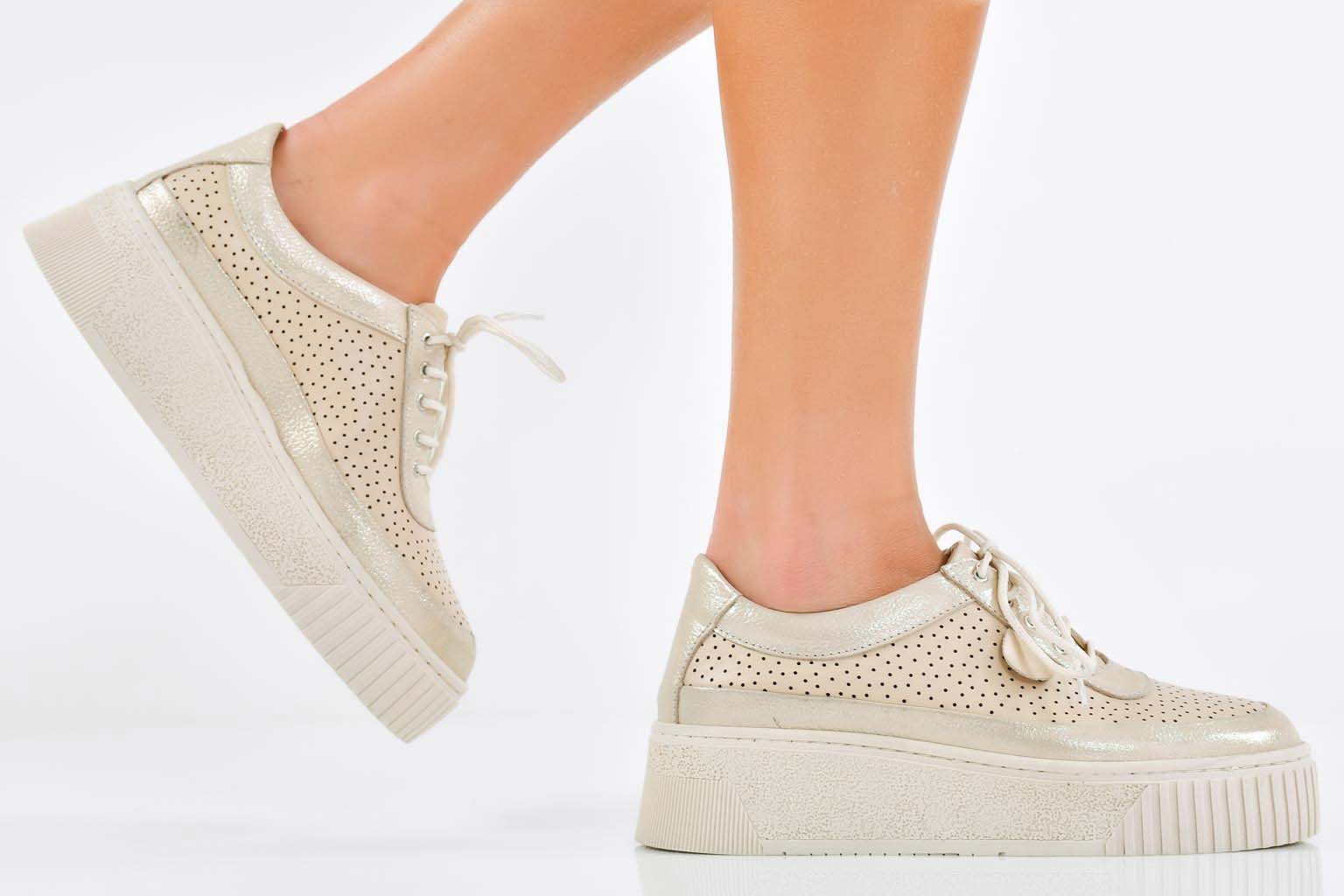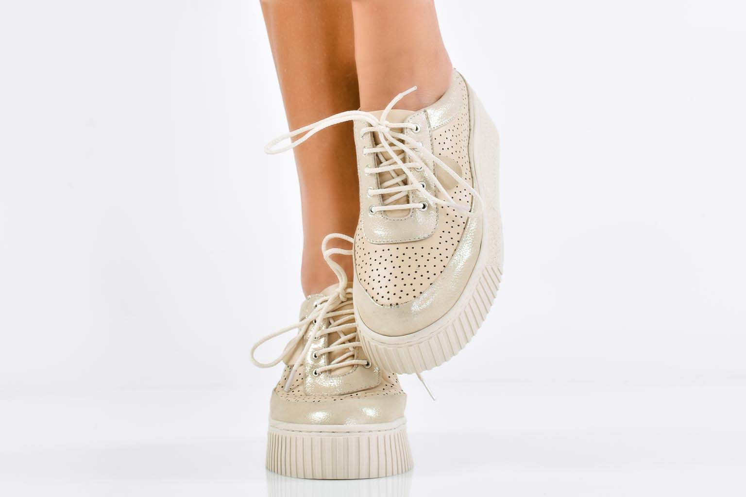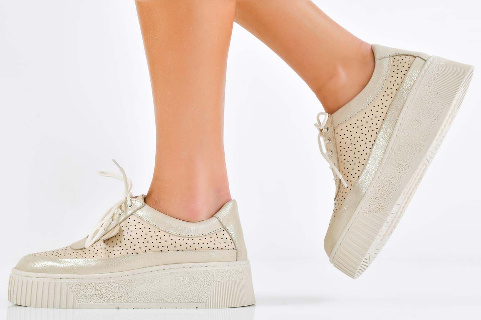 Дамски сникърси естествена кожа бежови EOBUVKIBG #502-7793