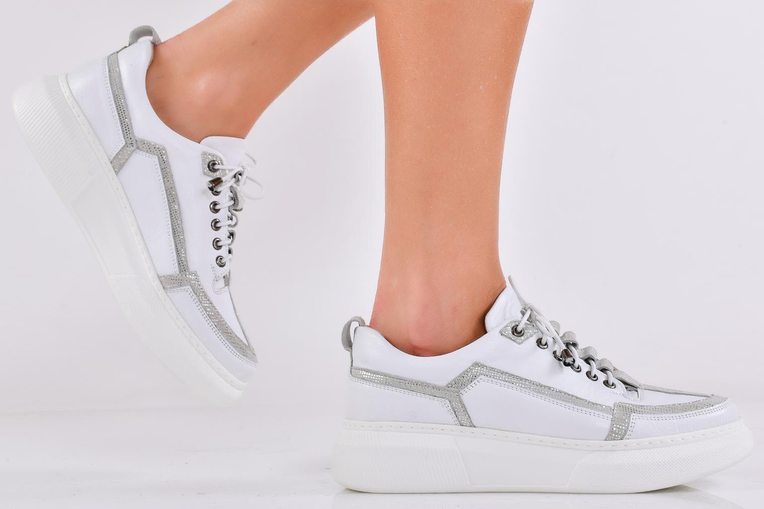 Дамски сникърси естествена кожа бели EOBUVKIBG #502-7117