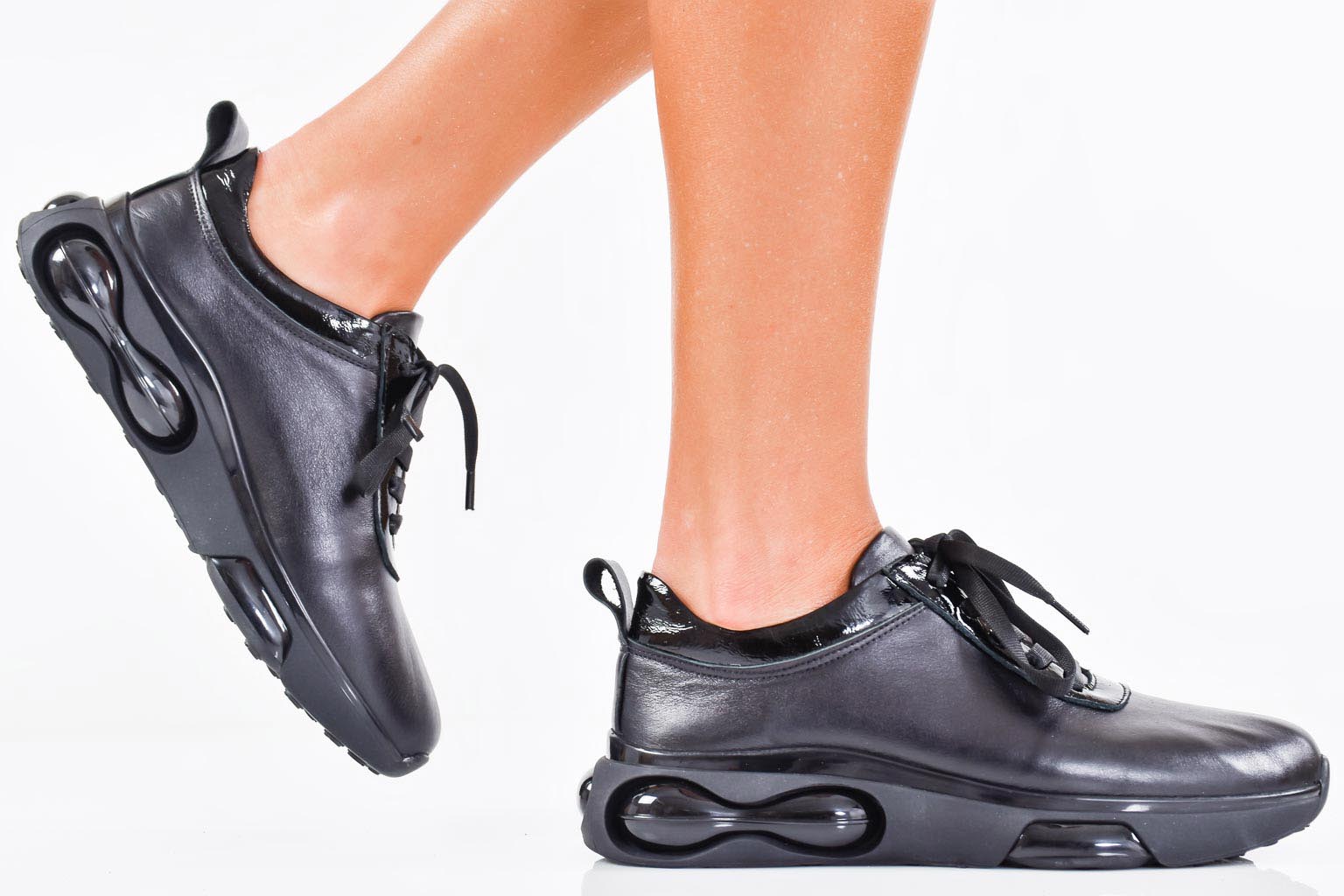 Дамски сникърси естествена кожа черни EOBUVKIBG #502-7032