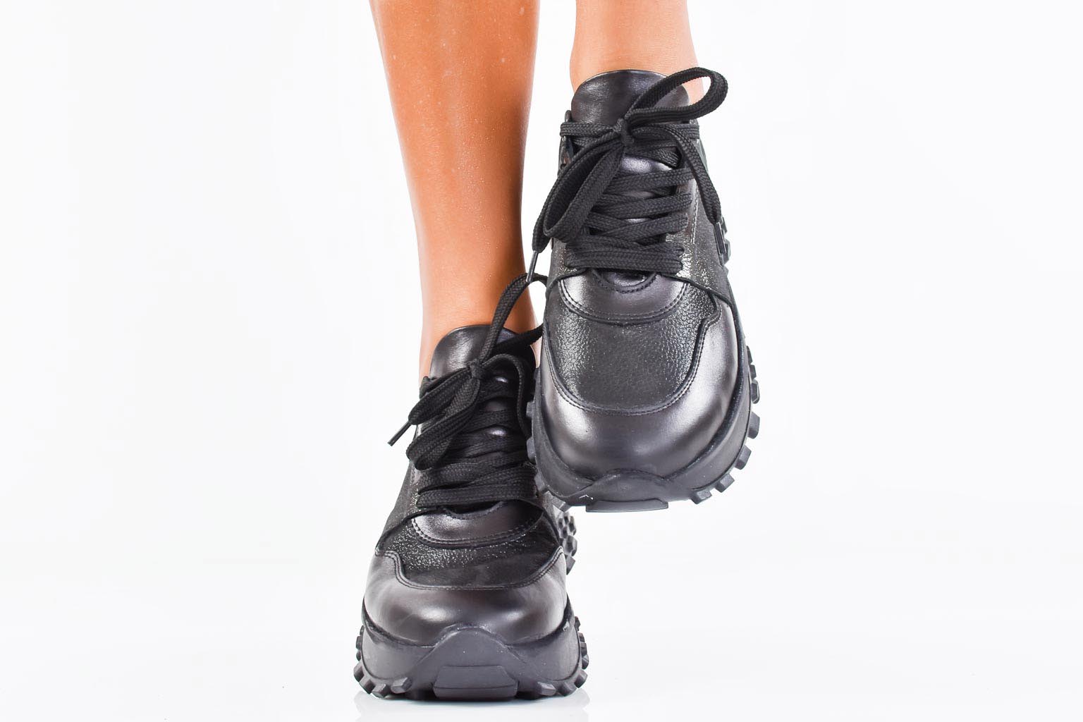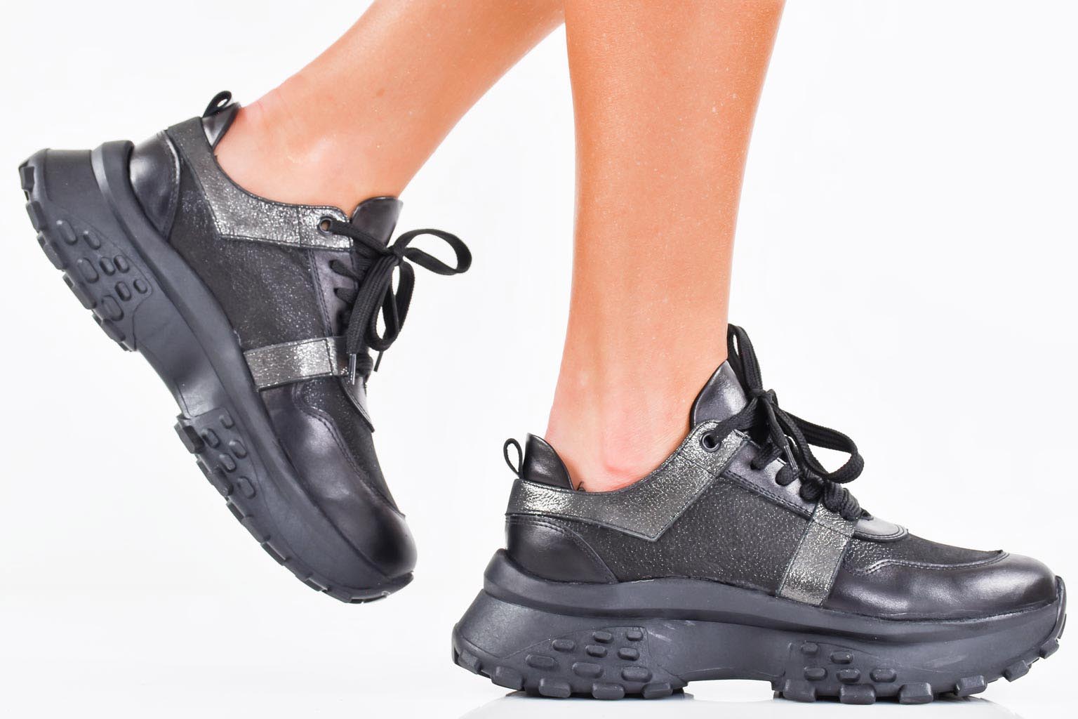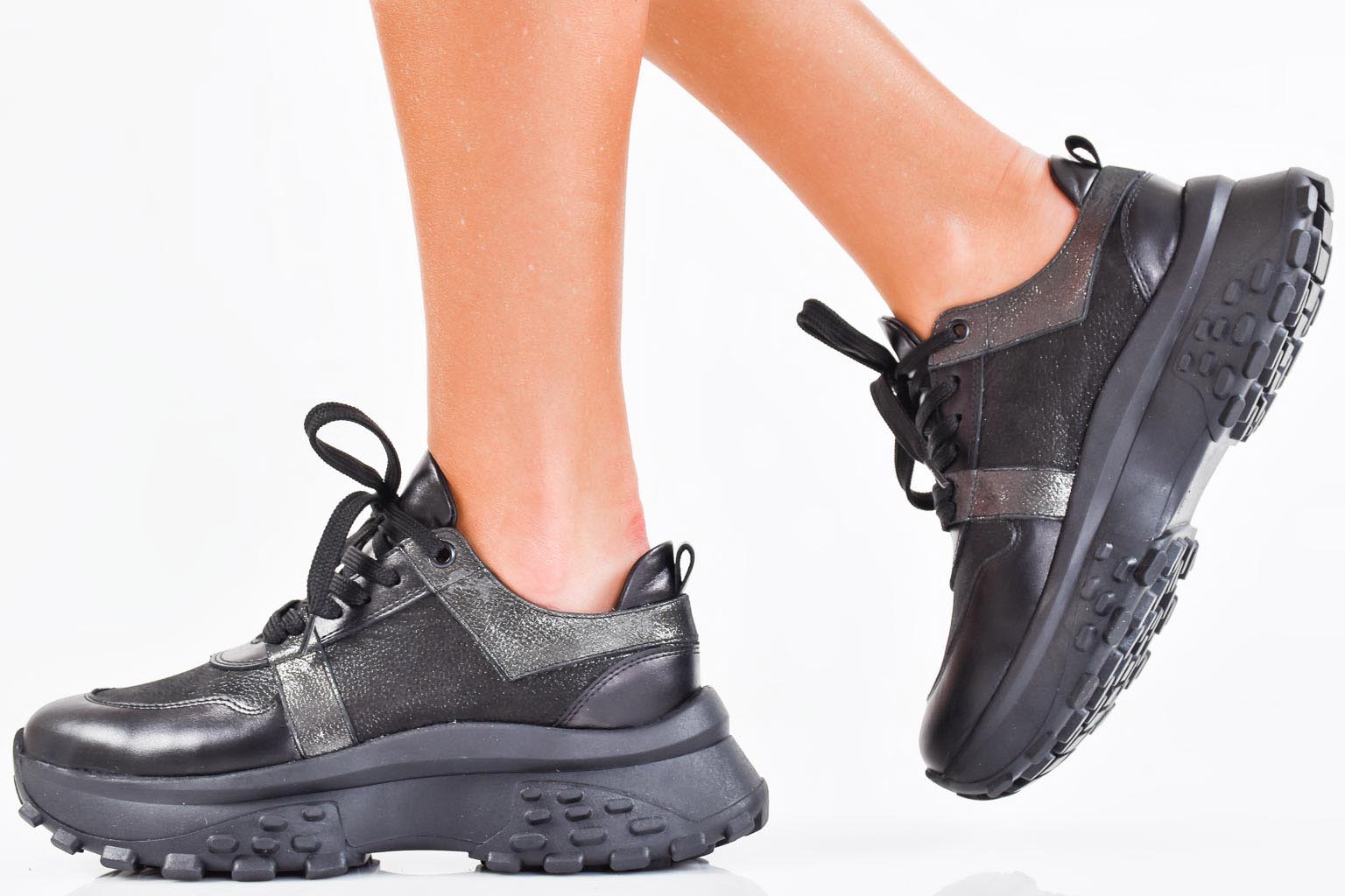 Дамски сникърси естествена кожа черни EOBUVKIBG #502-7044