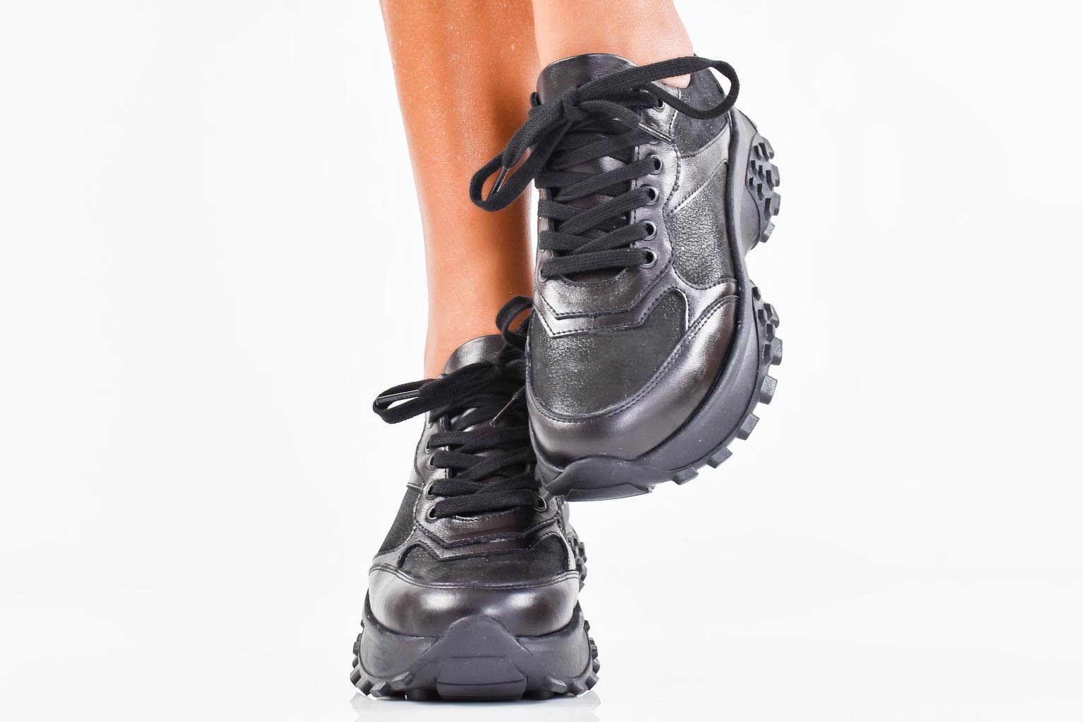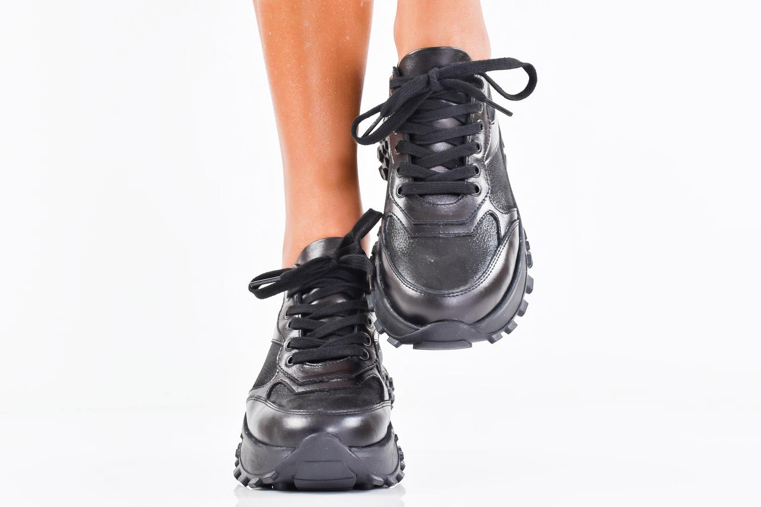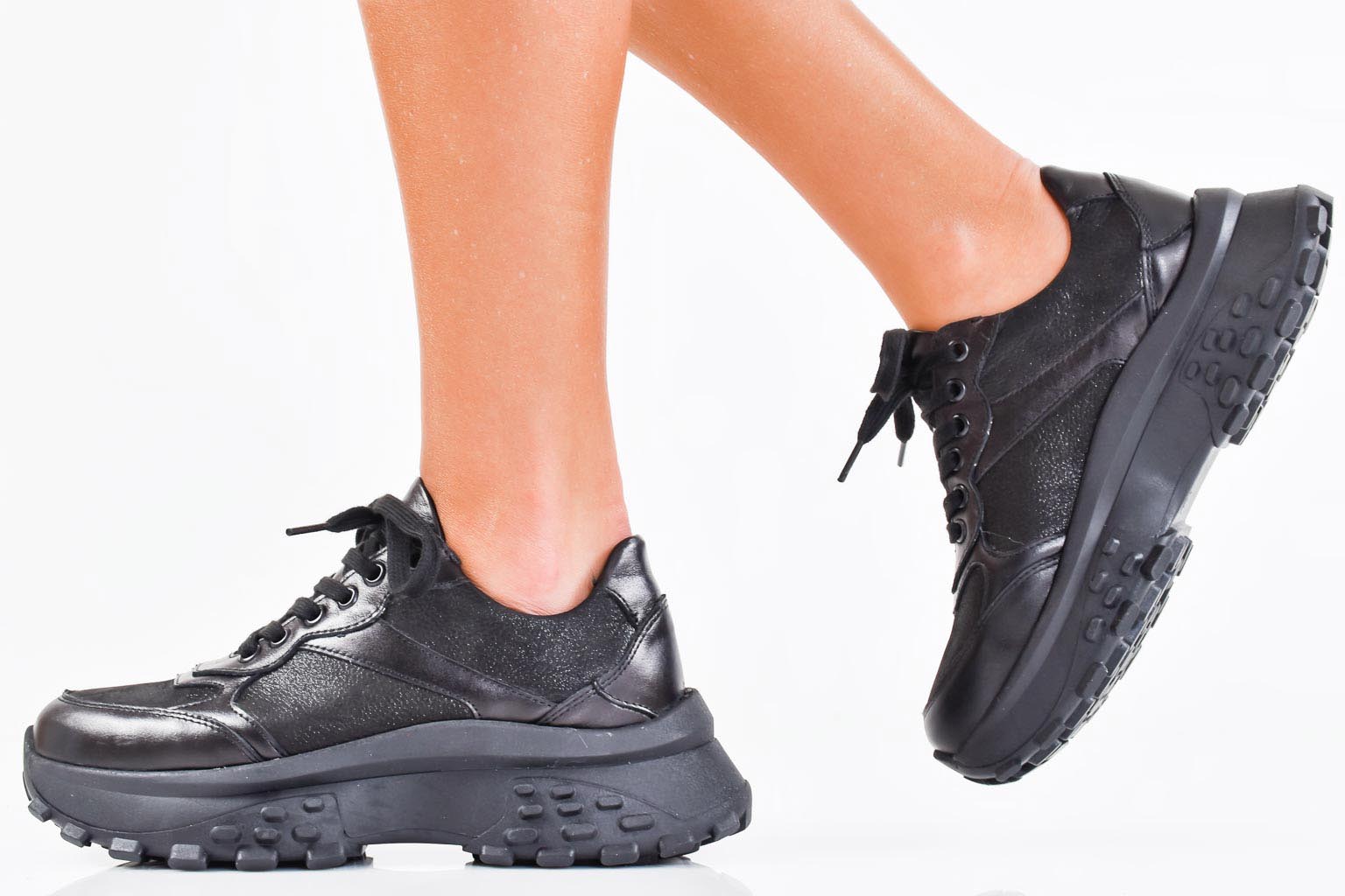 Дамски сникърси естествена кожа черни EOBUVKIBG #502-7047
