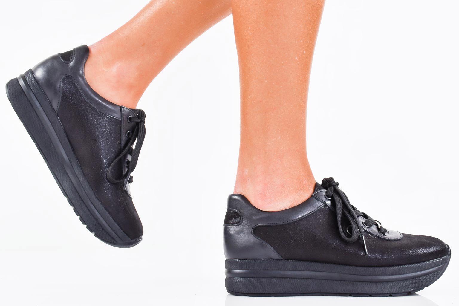 Дамски сникърси естествена кожа черни EOBUVKIBG #502-7061