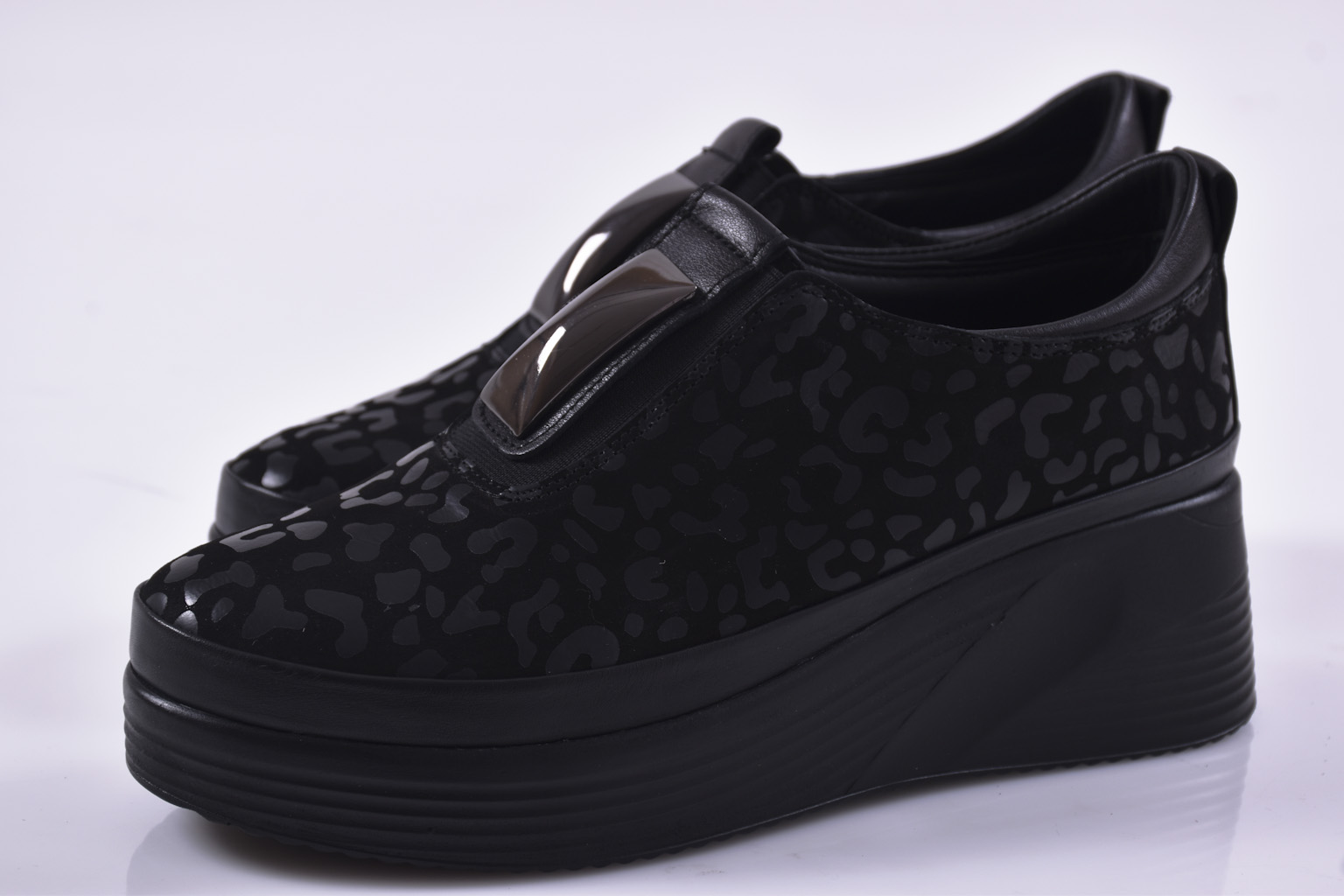 Дамски сникърси естествена кожа черни EOBUVKIBG #502-7062