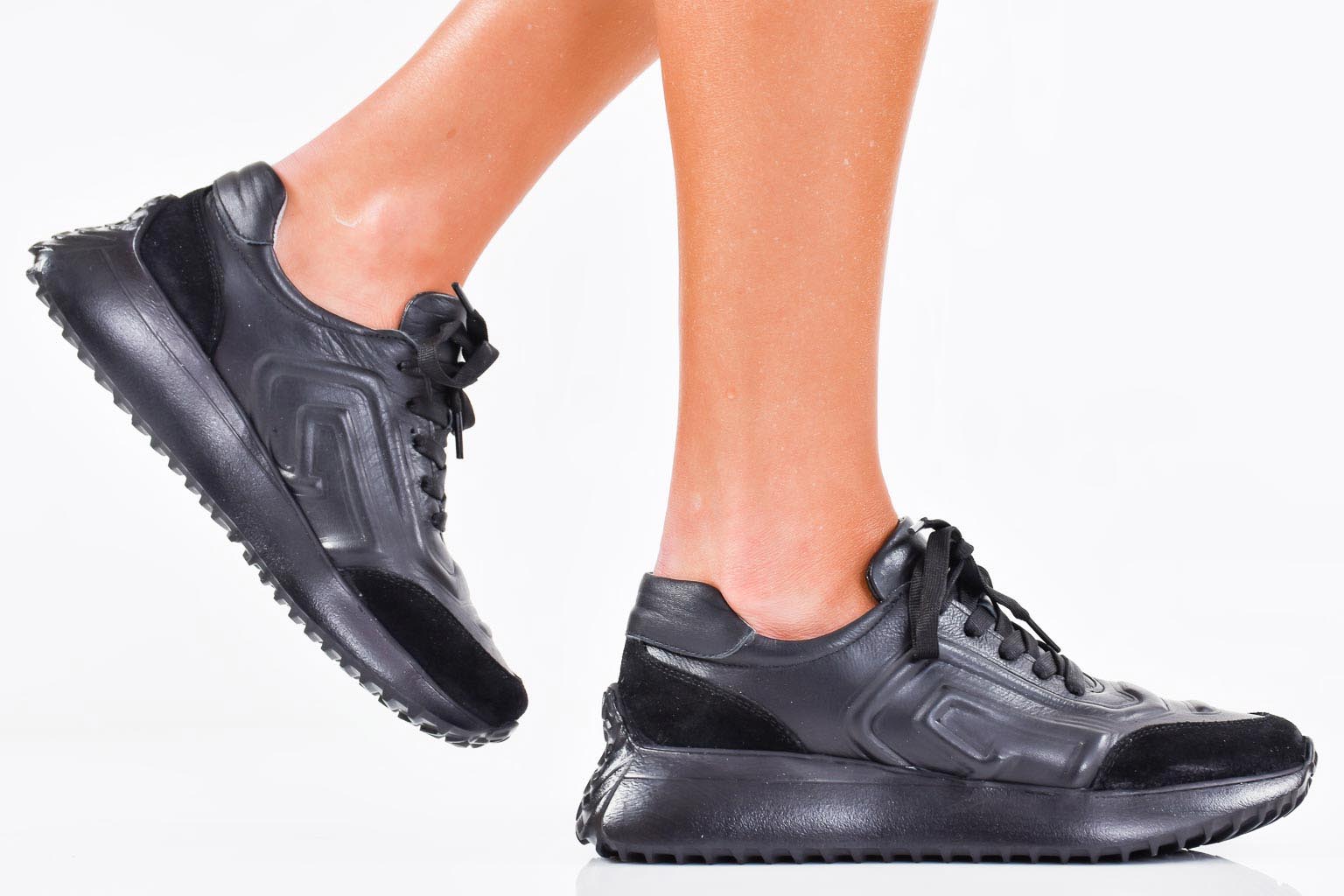 Дамски сникърси естествена кожа черни EOBUVKIBG #502-7069