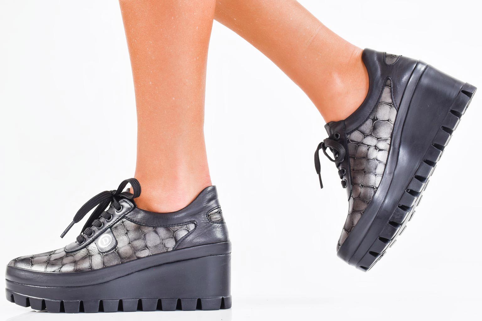 Дамски сникърси естествена кожа черни EOBUVKIBG #502-7113