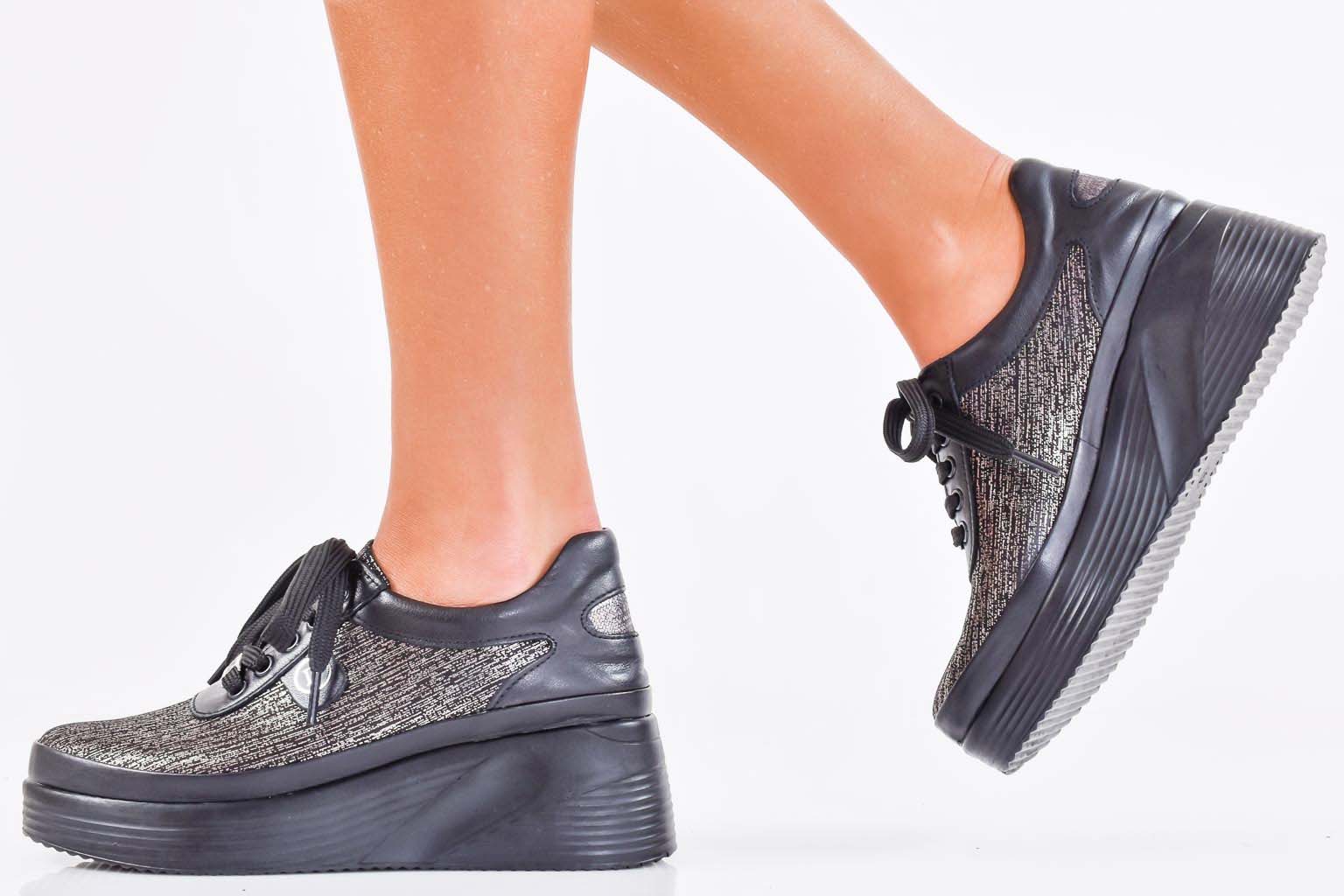 Дамски сникърси естествена кожа черни EOBUVKIBG #502-7193