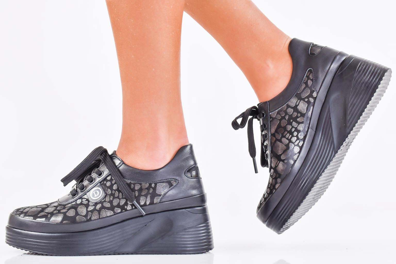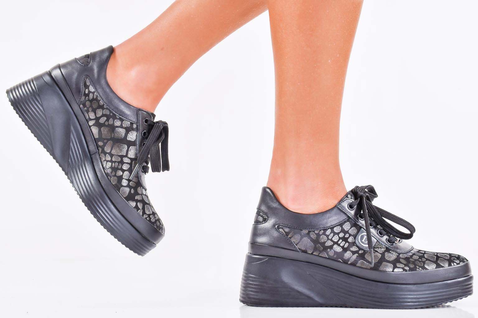 Дамски сникърси естествена кожа черни EOBUVKIBG #502-7194