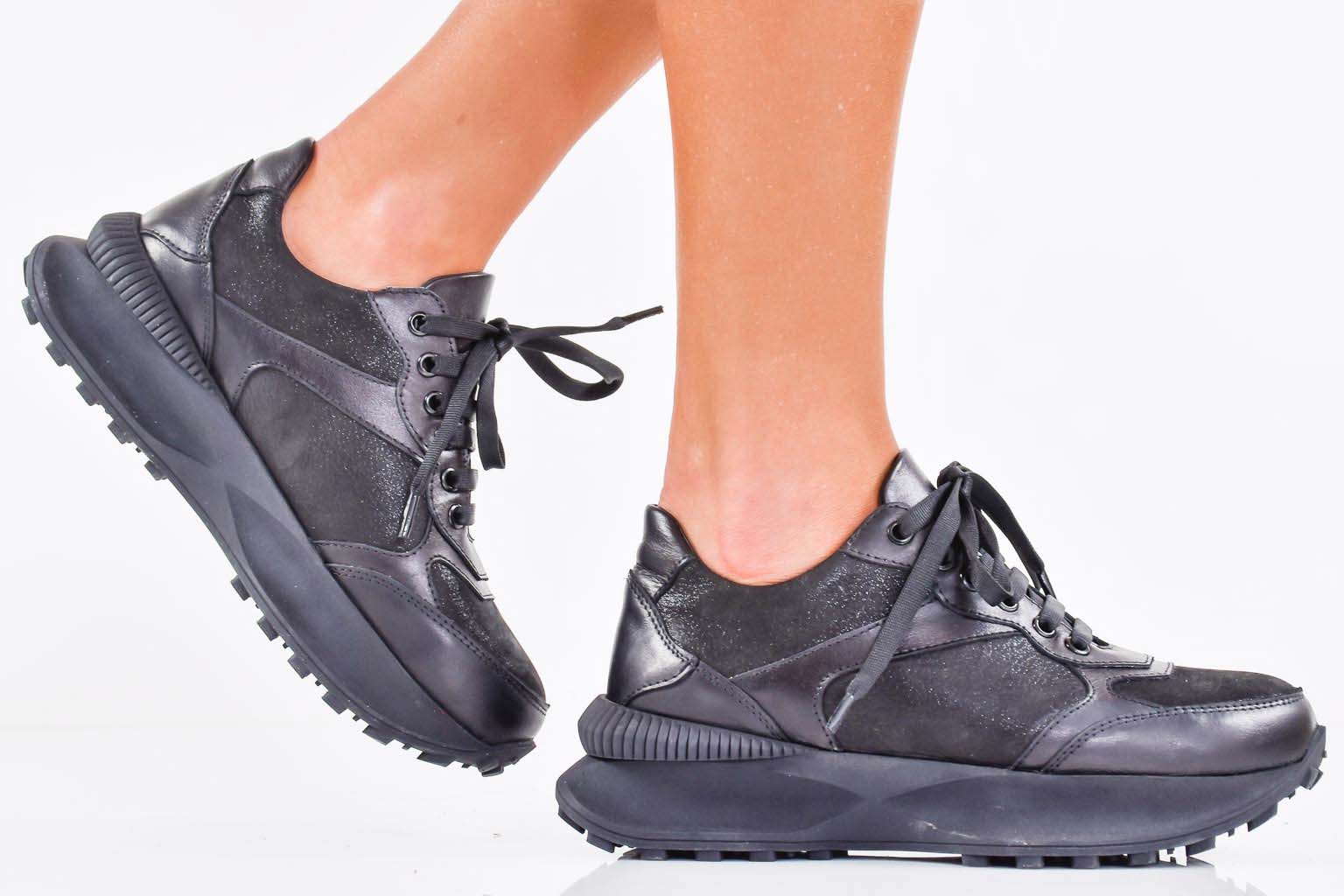Дамски сникърси естествена кожа черни EOBUVKIBG #502-7214