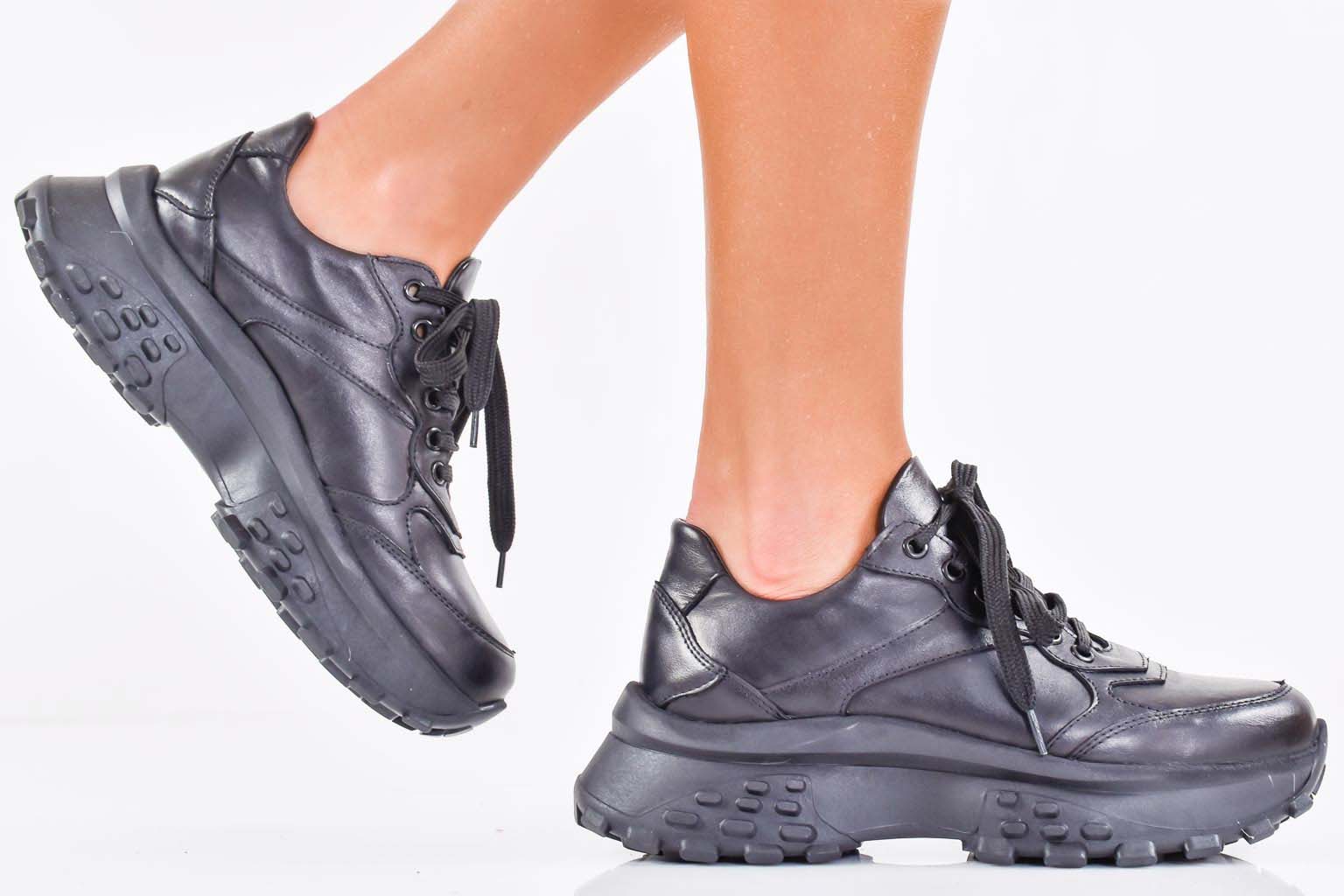 Дамски сникърси естествена кожа  черни EOBUVKIBG