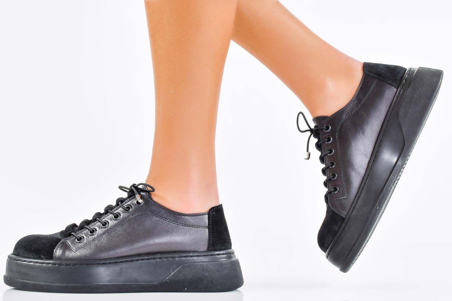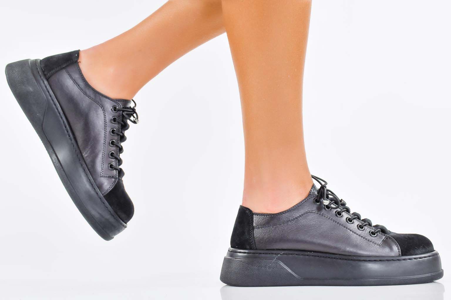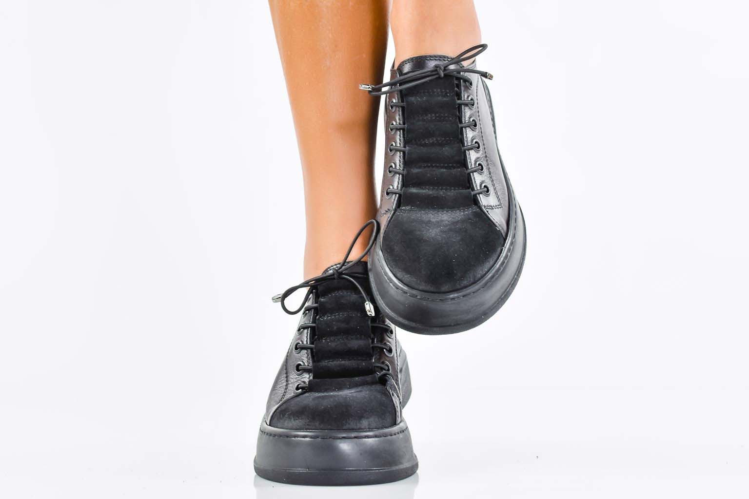 Дамски сникърси естествена кожа черни EOBUVKIBG #502-7562