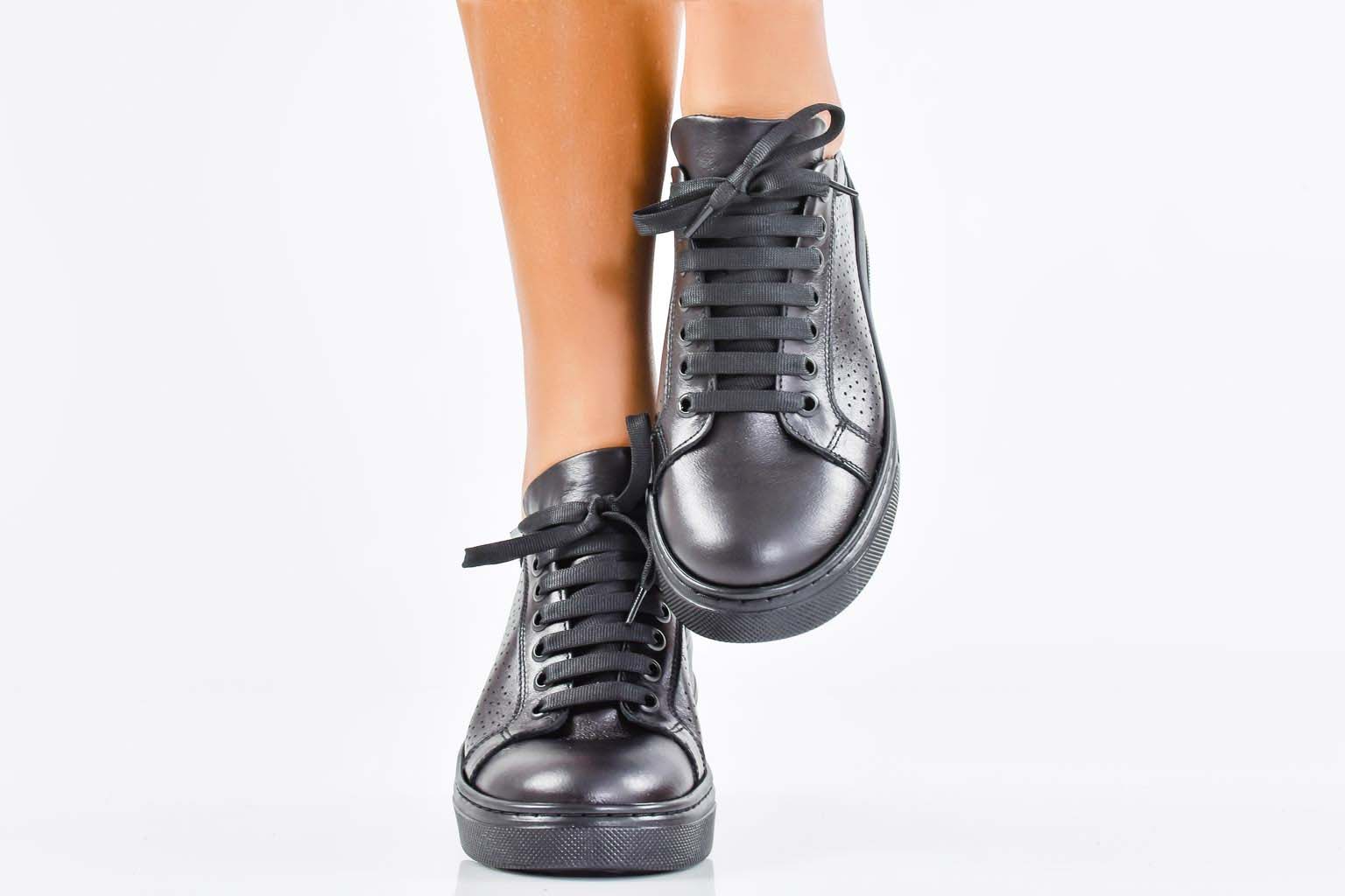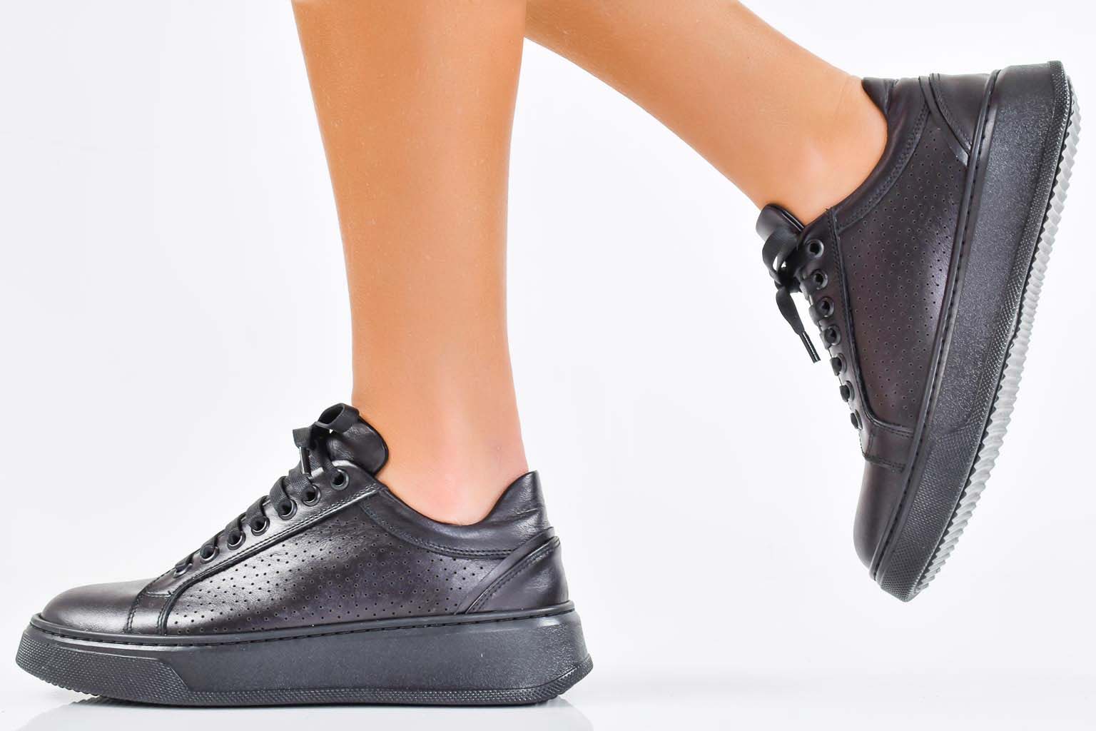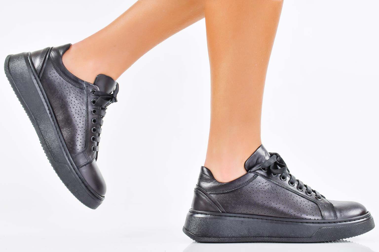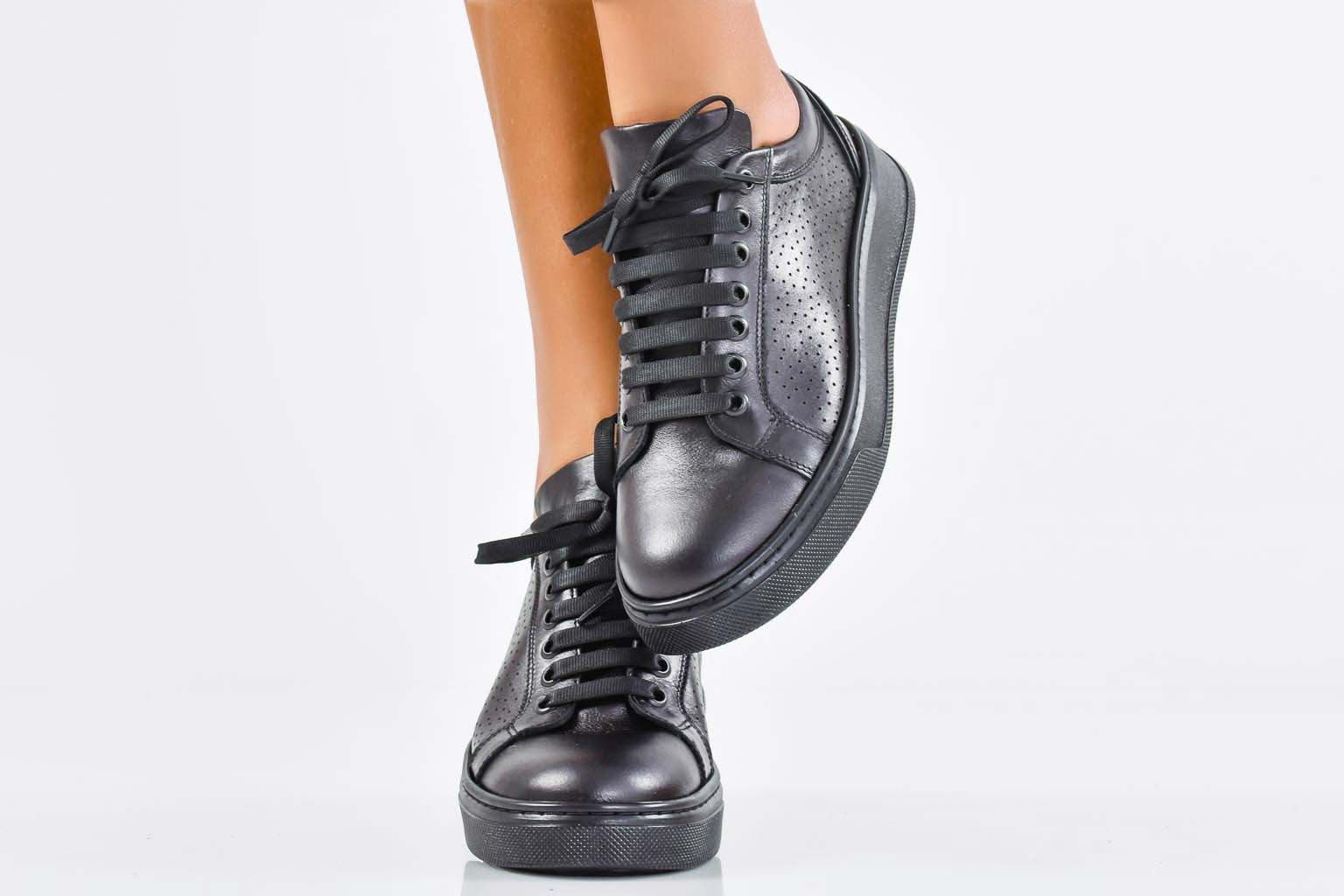 Дамски сникърси естествена кожа черни EOBUVKIBG