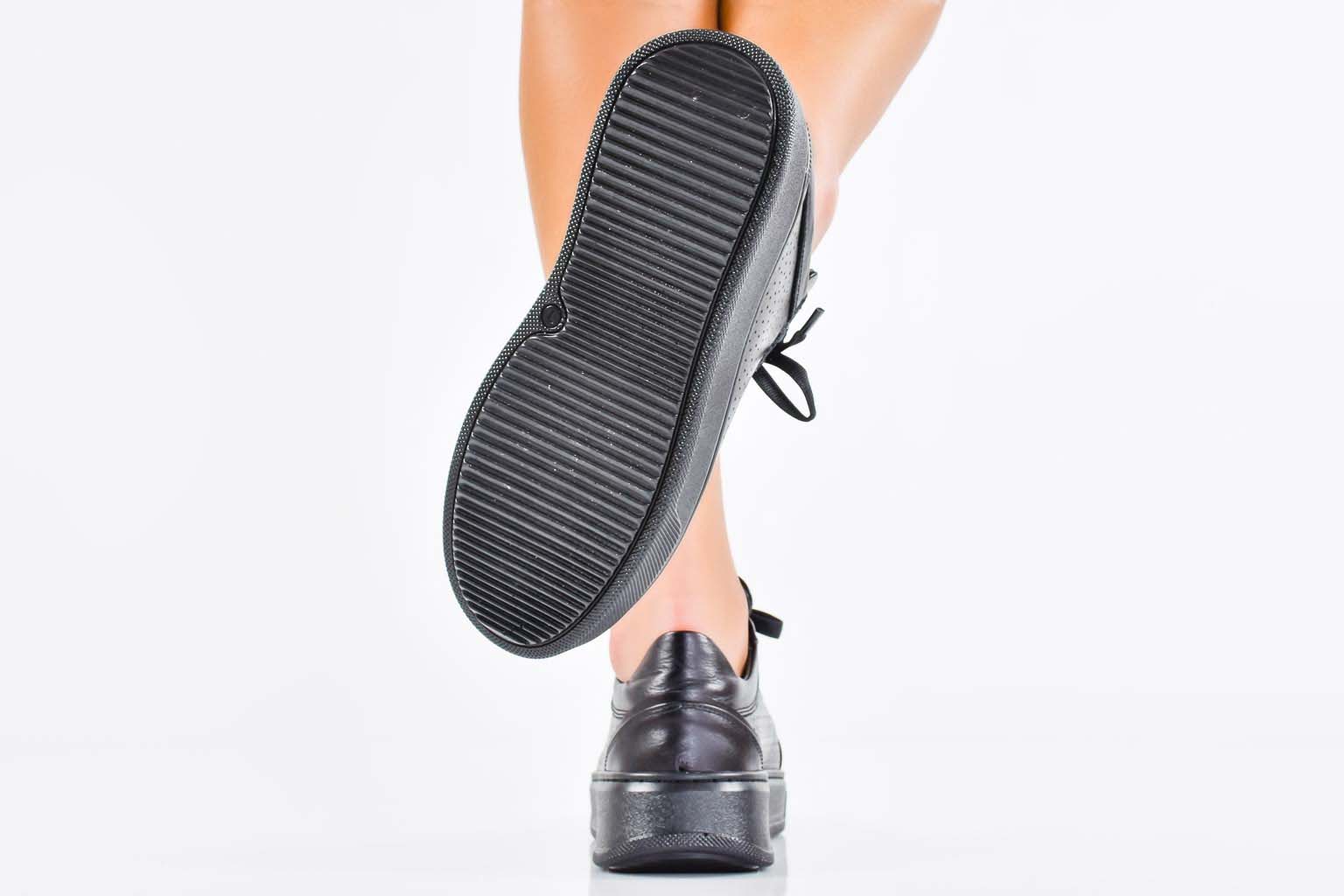 Дамски сникърси естествена кожа черни EOBUVKIBG #502-7568