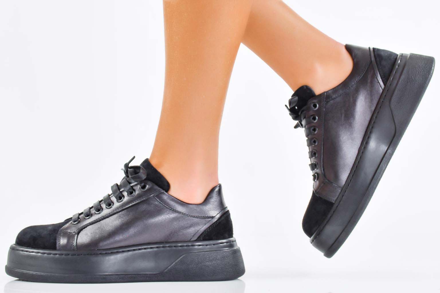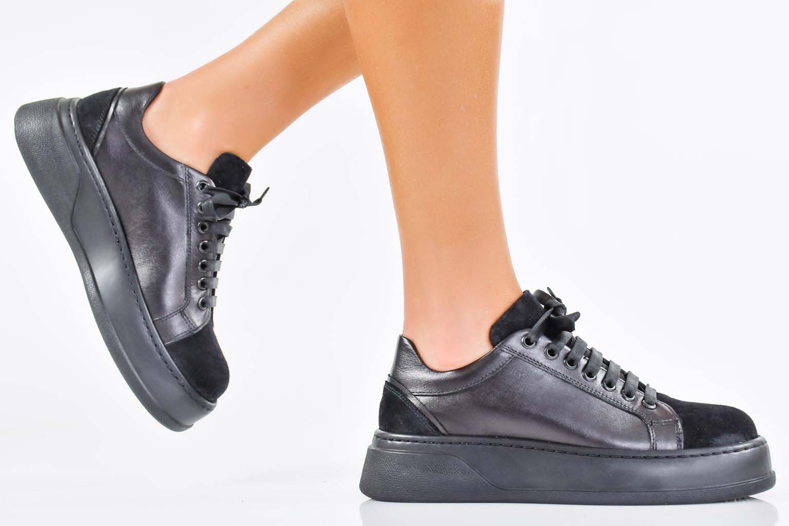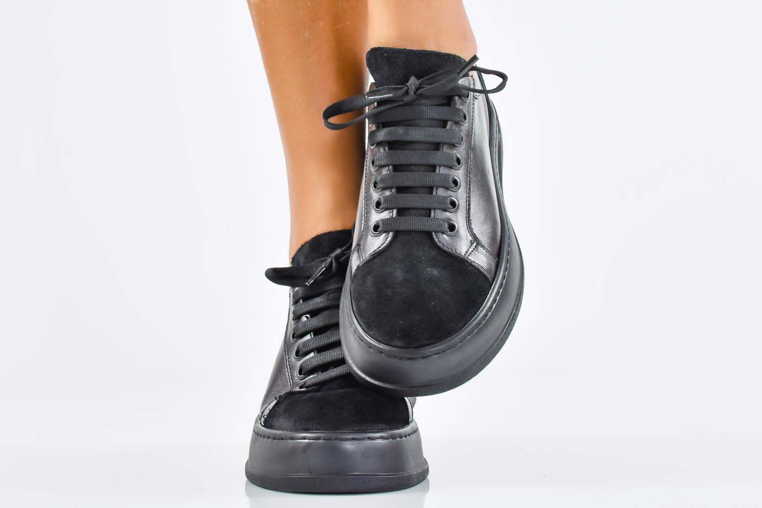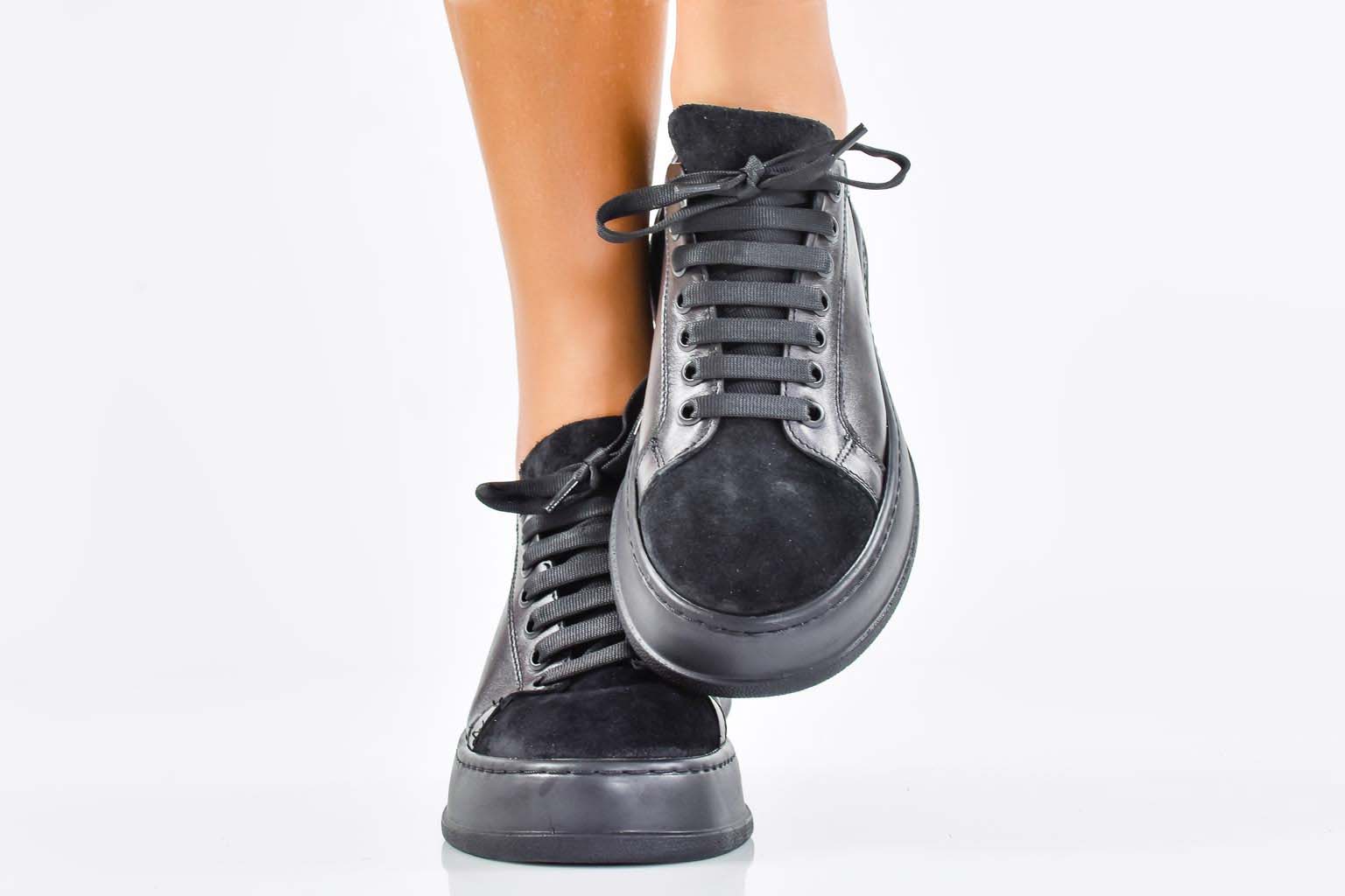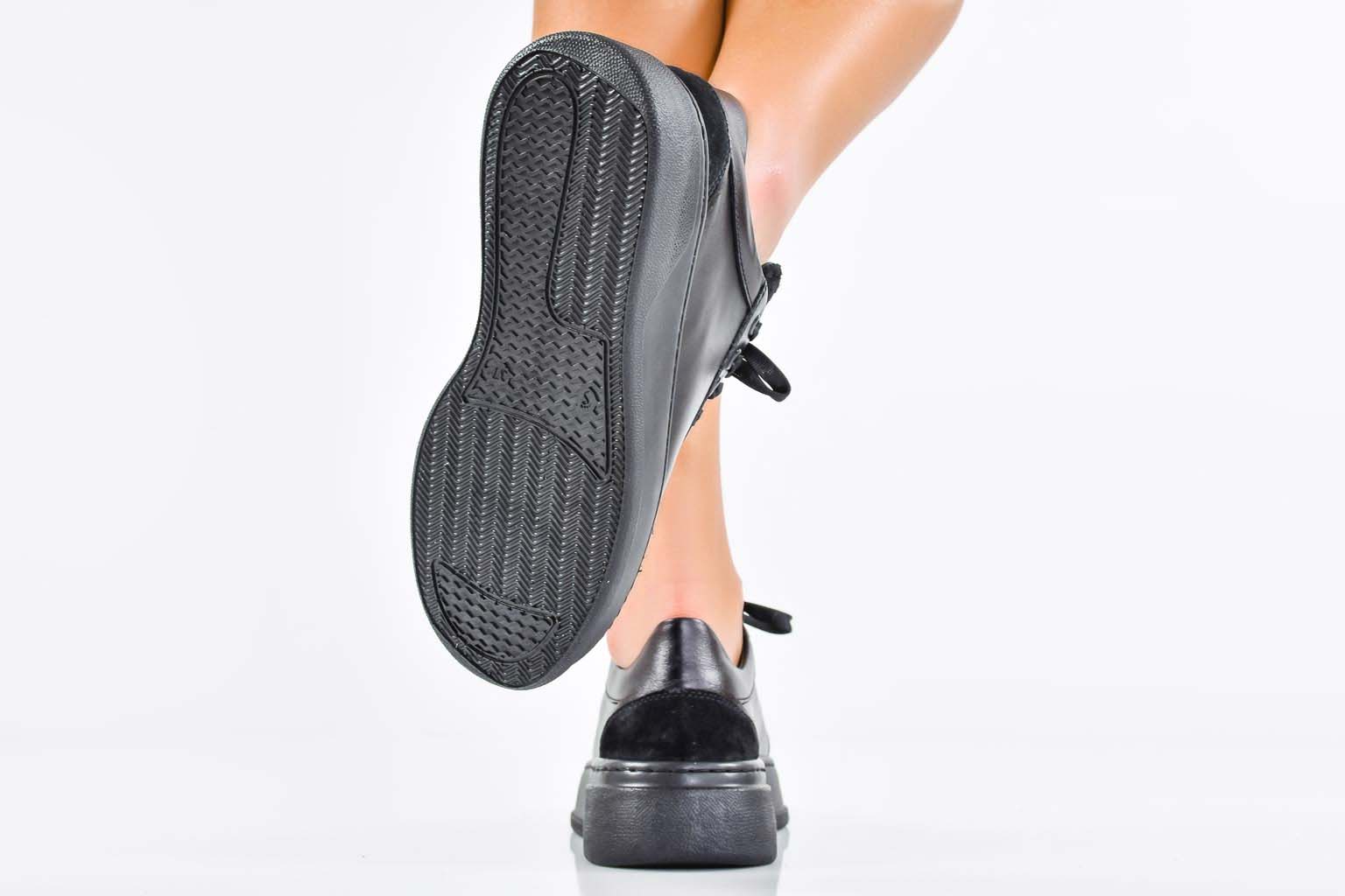 Дамски сникърси естествена кожа черни EOBUVKIBG #502-7571