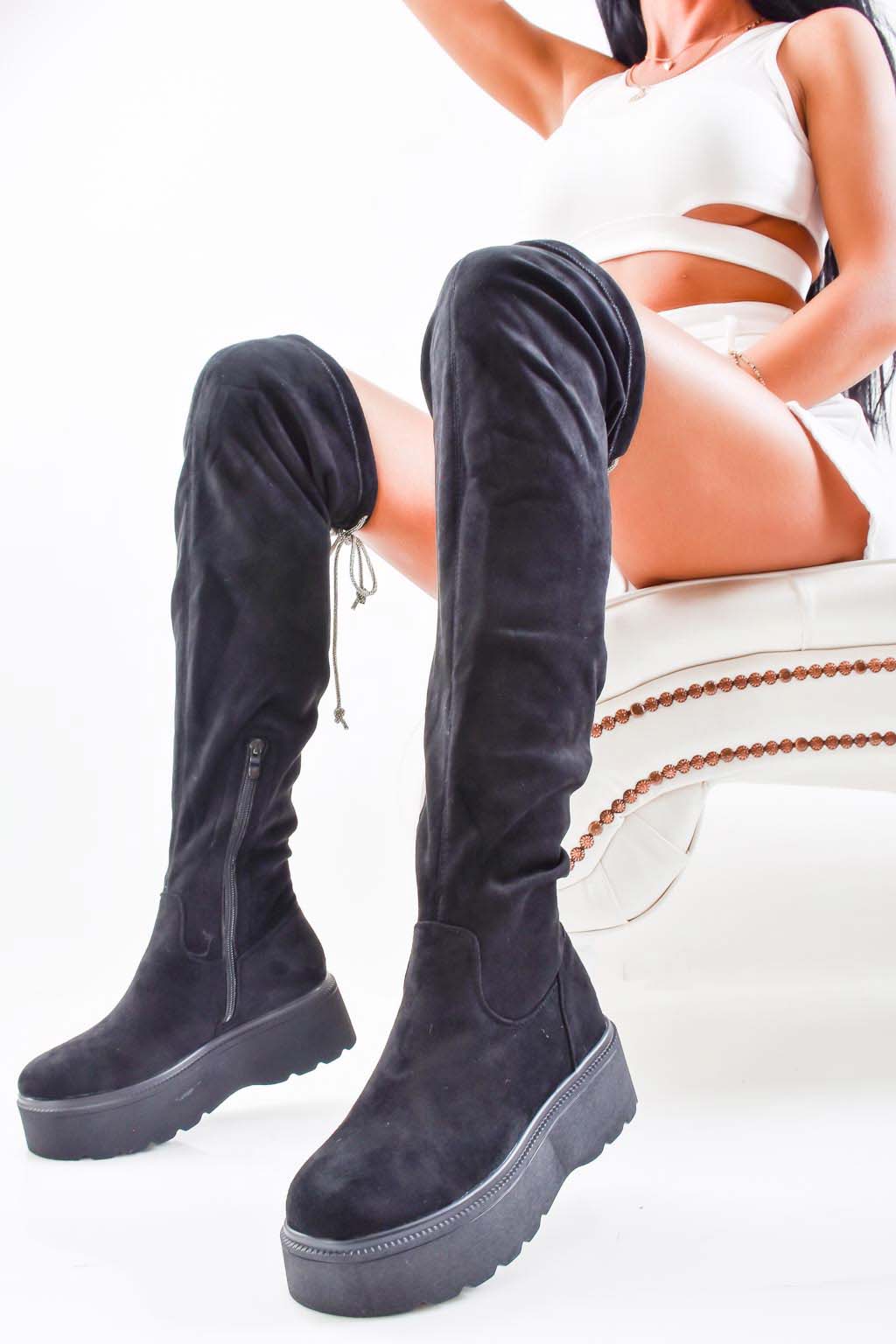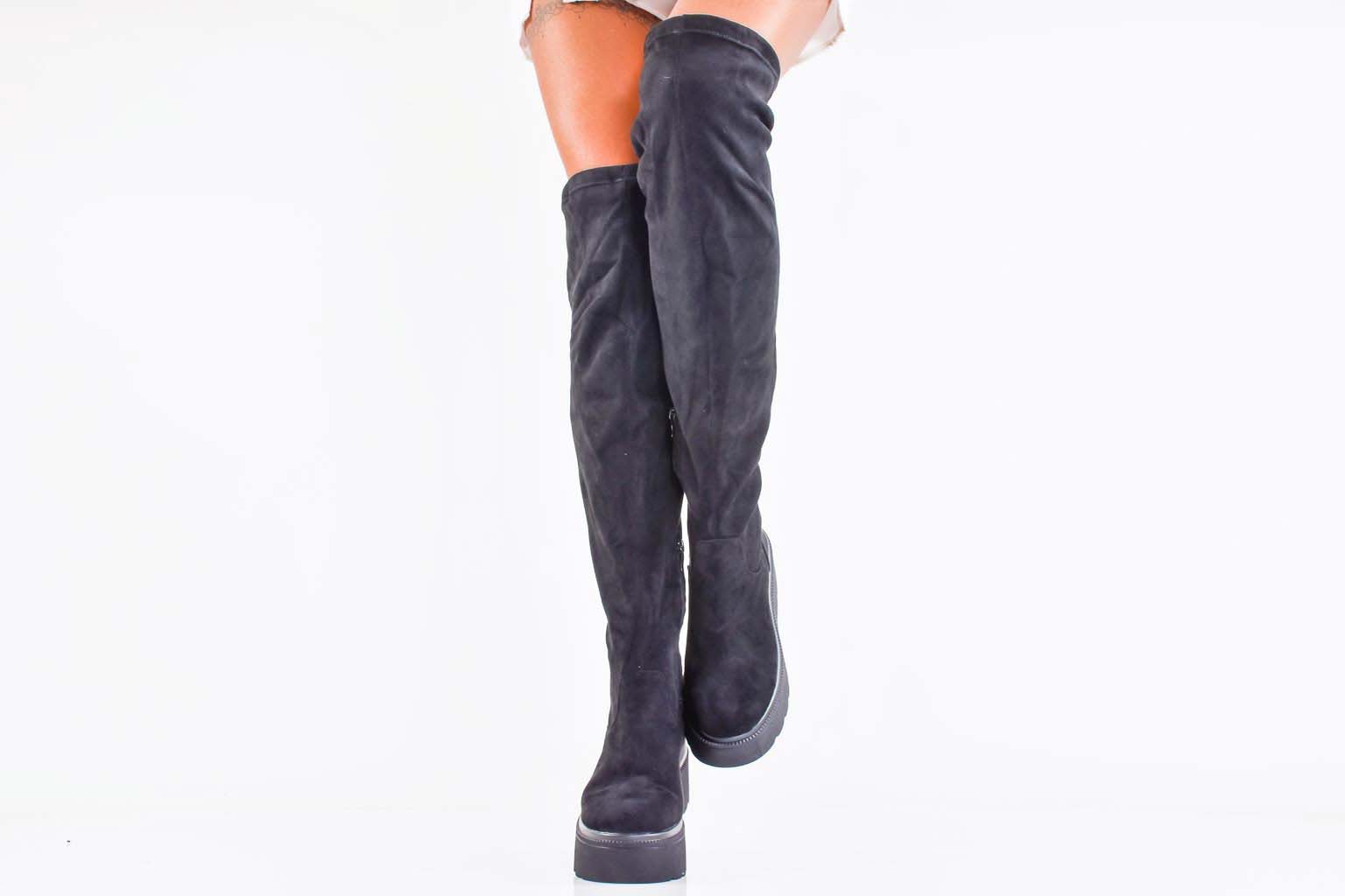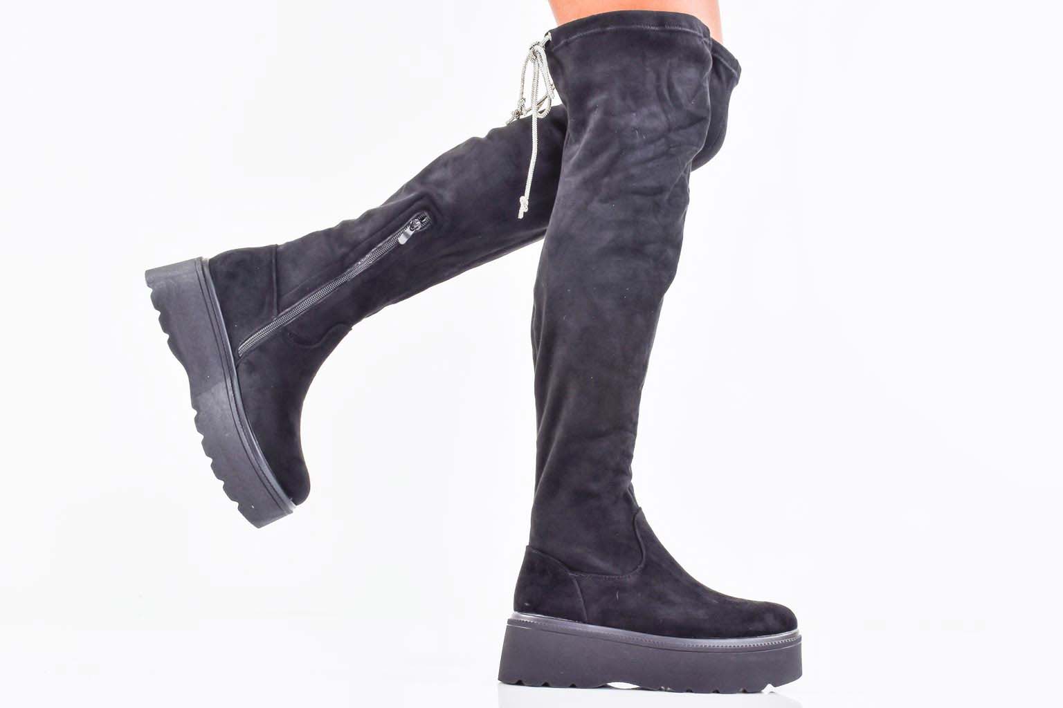 Имаме удоволствието да Ви представим нов модел дамски чизми. EOBUVKIBG 502- 7153 в черен цвят. Вътрешността е изцяло от фин мек топъл хастар, стелката е мека и комфортна. Ботите са с удобно ходило чиято извивка плавно следва стъпалото, гарантирайки опора и мекота. Ципа регулира ширината и улеснява обуването.Характеристика;Материал:Велур.Височина на платформата в предната част; 4,5 см. Височина на тока 5,5 см. Височина на модела от петата до горе 60 см. Цвят;Черен. Номерация;36-41:Тегло на модела 37 размер 480 грама. Моделът е стандартен и отговаря на размерите.