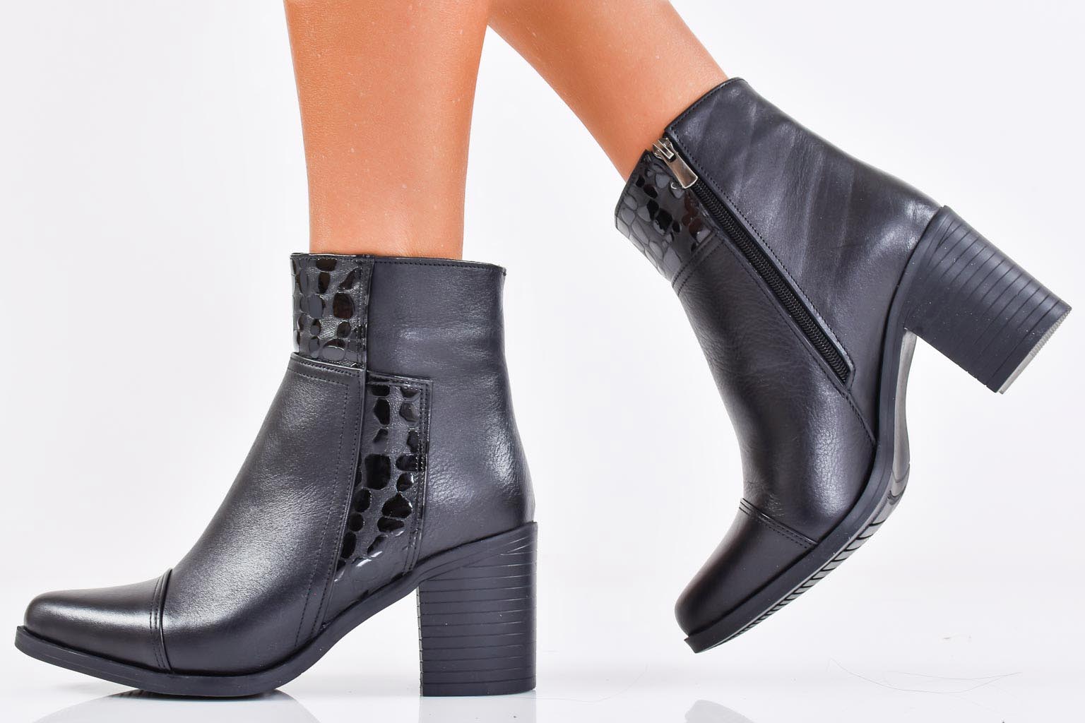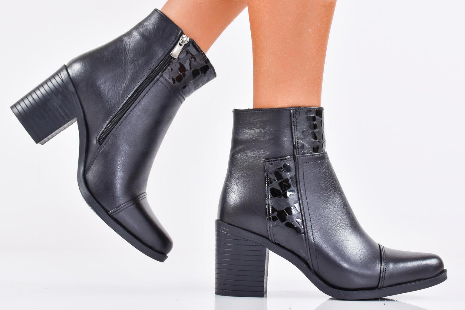 Дамски елегантни боти естествена кожа черни EOBUVKIBG #502-6984