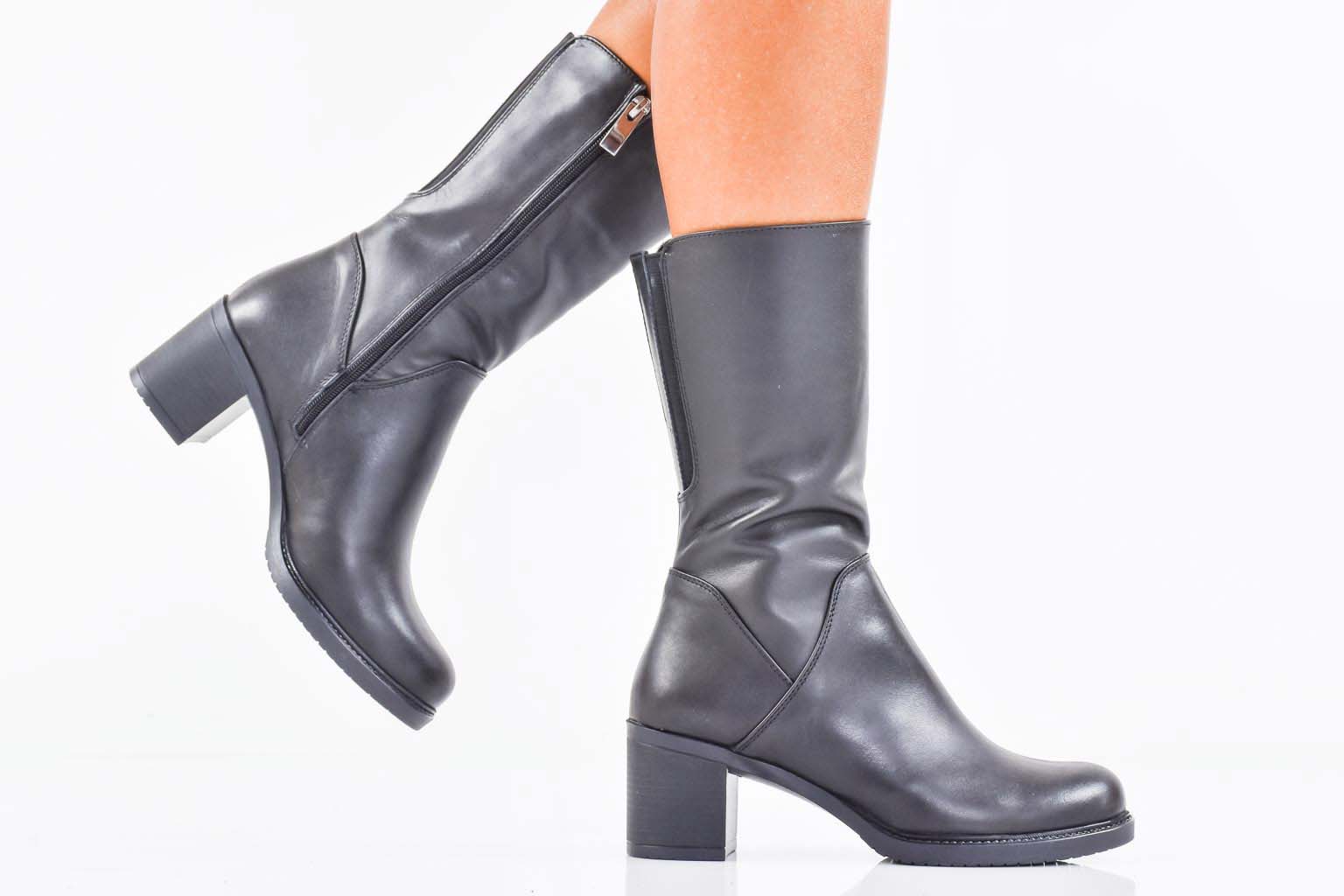 Дамски елегантни боти естествена кожа черни EOBUVKIBG #502-7356