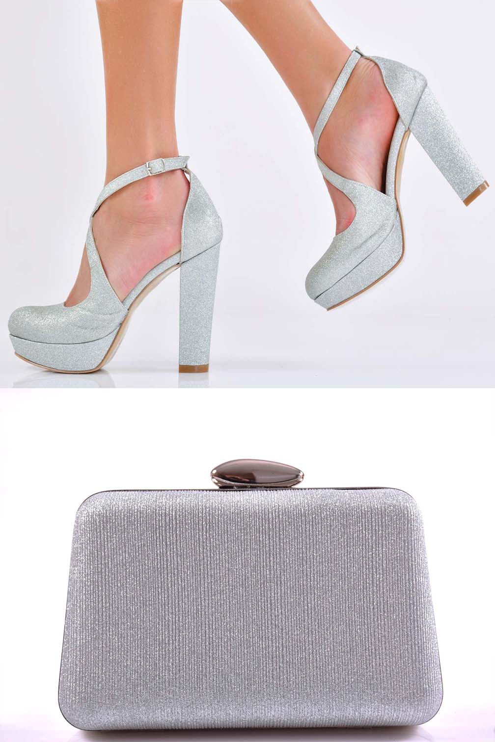 Имаме удоволствието да Ви представим комплект чанта и сандал EOBUVKIBG 502-7718 в сребрист цвят.Комплекта е подходящ за официален повод и събития като абитуриентски бал, сватба или вечерен повод. Чантата разполага с дълга дръжка и е с едно отделение и магнитно закопчаване . Характеристика:Височина на чантата: 11 см. Ширина на чантата: 20 см. Цвят: Сребрист. Kаталожен номер на чантата: 502-7690.