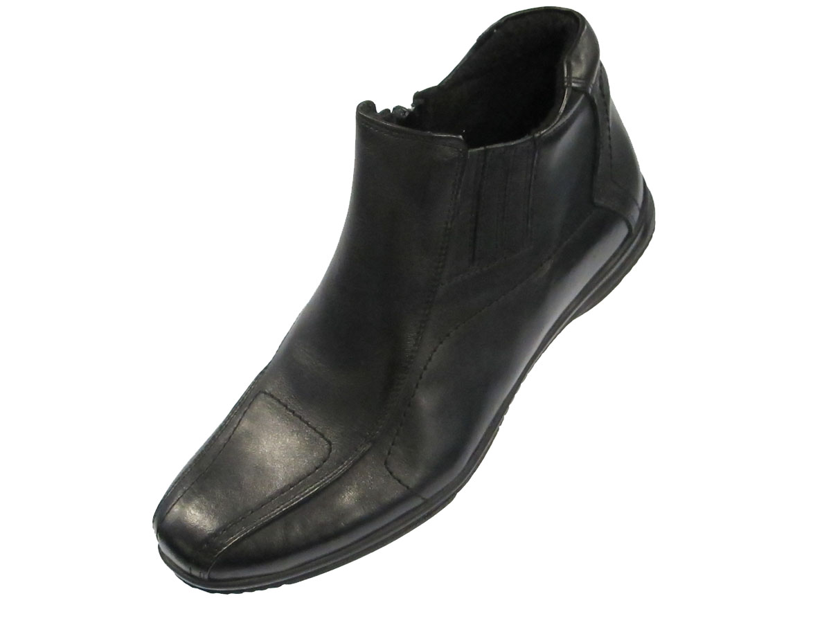 Мъжки боти , които са изработени от естествена кожа тип селектиран телешки бокс обработена на пара за естествен блясък и анатомично изработени стелка и ходило за по-голямо удобство . Номера : 40 - 44 ; Материал : лицева част - естествена кожа тип телешки бокс ; Хастар : естествен пух ; Ходило : каучук ; Цвят : черен ; В наличност .