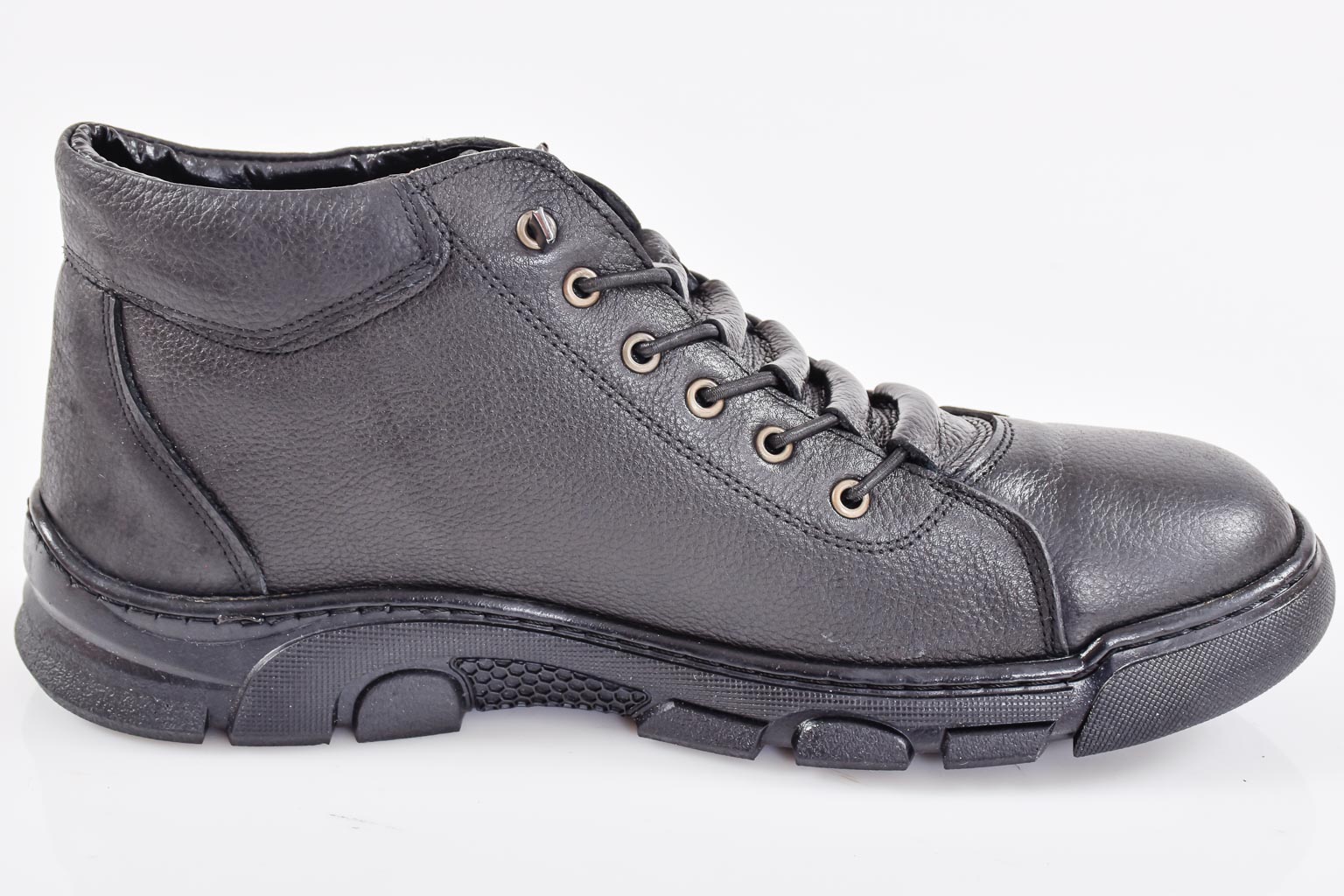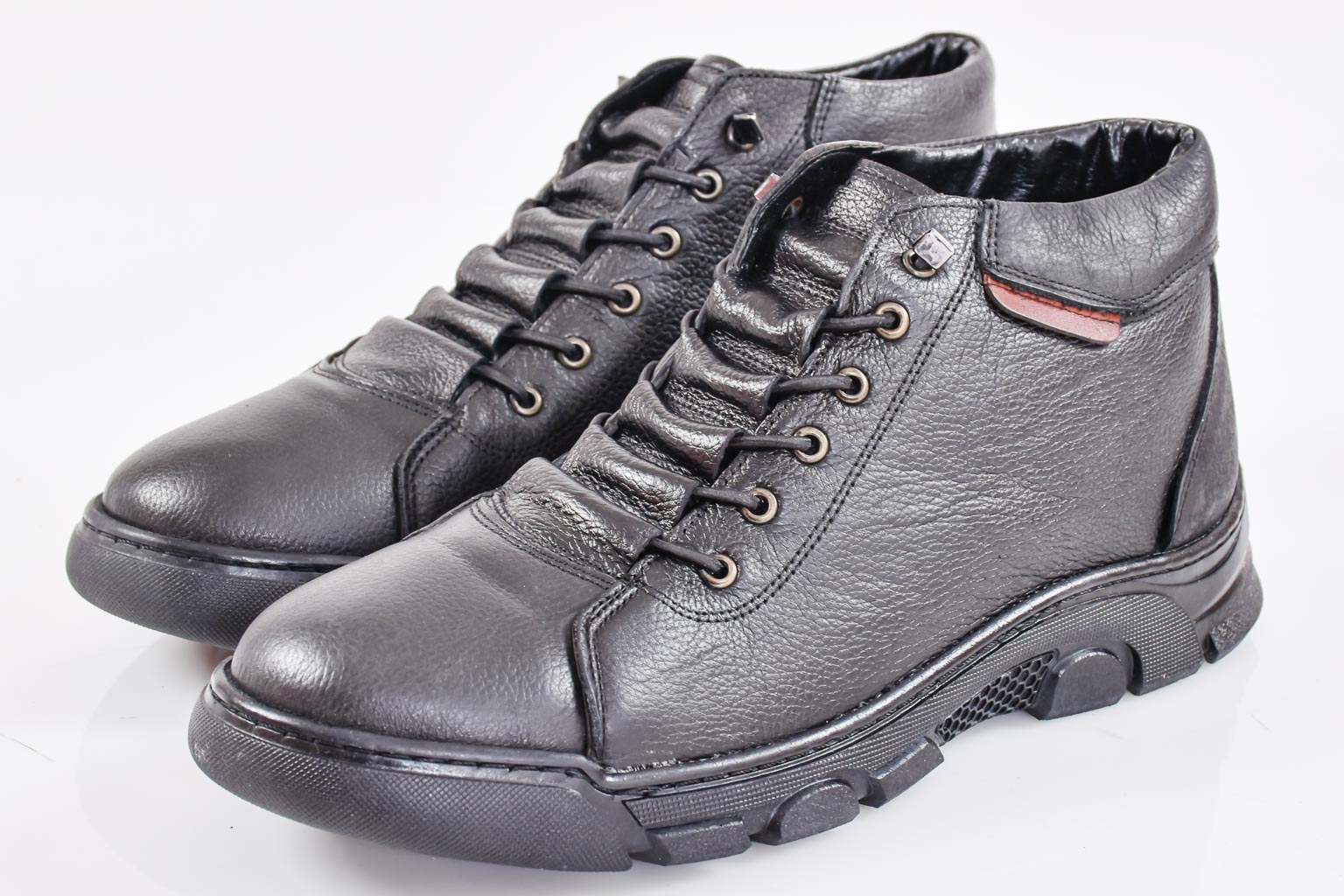 Представяме Ви, мъжки боти с връзки EOBUVKIBG 502-7182 в черен цвят. Лицевата част е изработена от естествена водонепромукаема кожа.Модела е с връзка който улесняват обуването. Вътрешността е от топъл мек хастар. Ходилото е кучуково и не позволява пързаляне по мокри и хлъзгави повърхности за по-добро сцепление и термоизолация на крака. Материал;Водонепропускаема естествена кожа. Ходило;Каучук. Цвят;Черен. Височина на подметката в предната част; 2см.Височина на подметката в задната част 3 см. Номерация;40-44 Моделът е стандартен и отговаря на размерите. Тегло на модела 42 размер 440 грама.