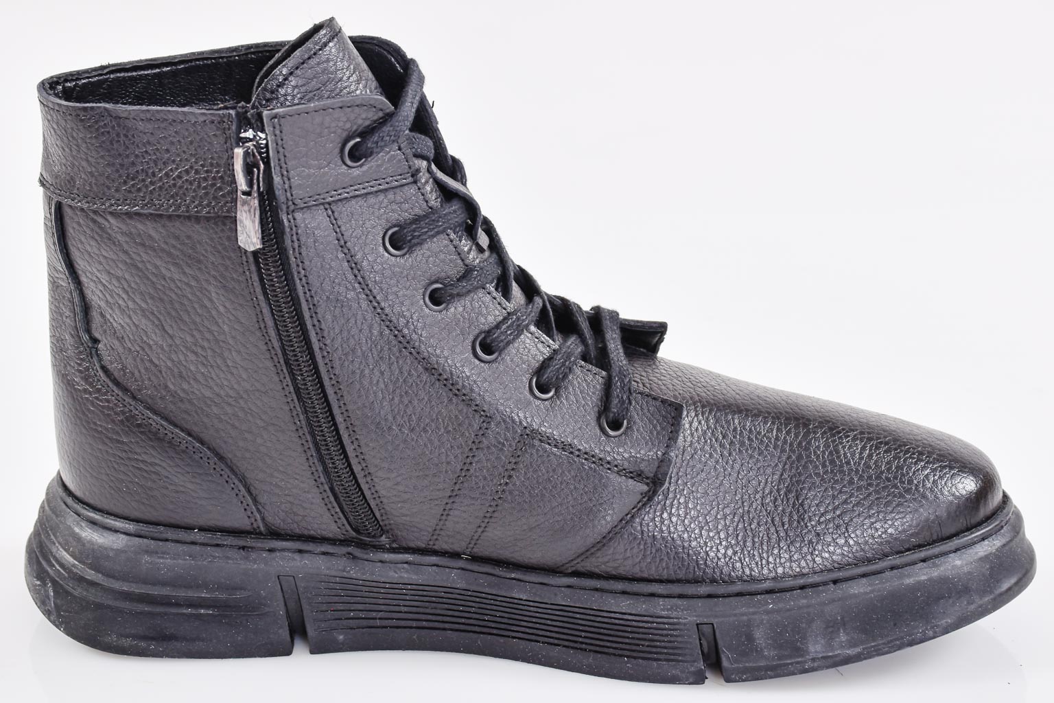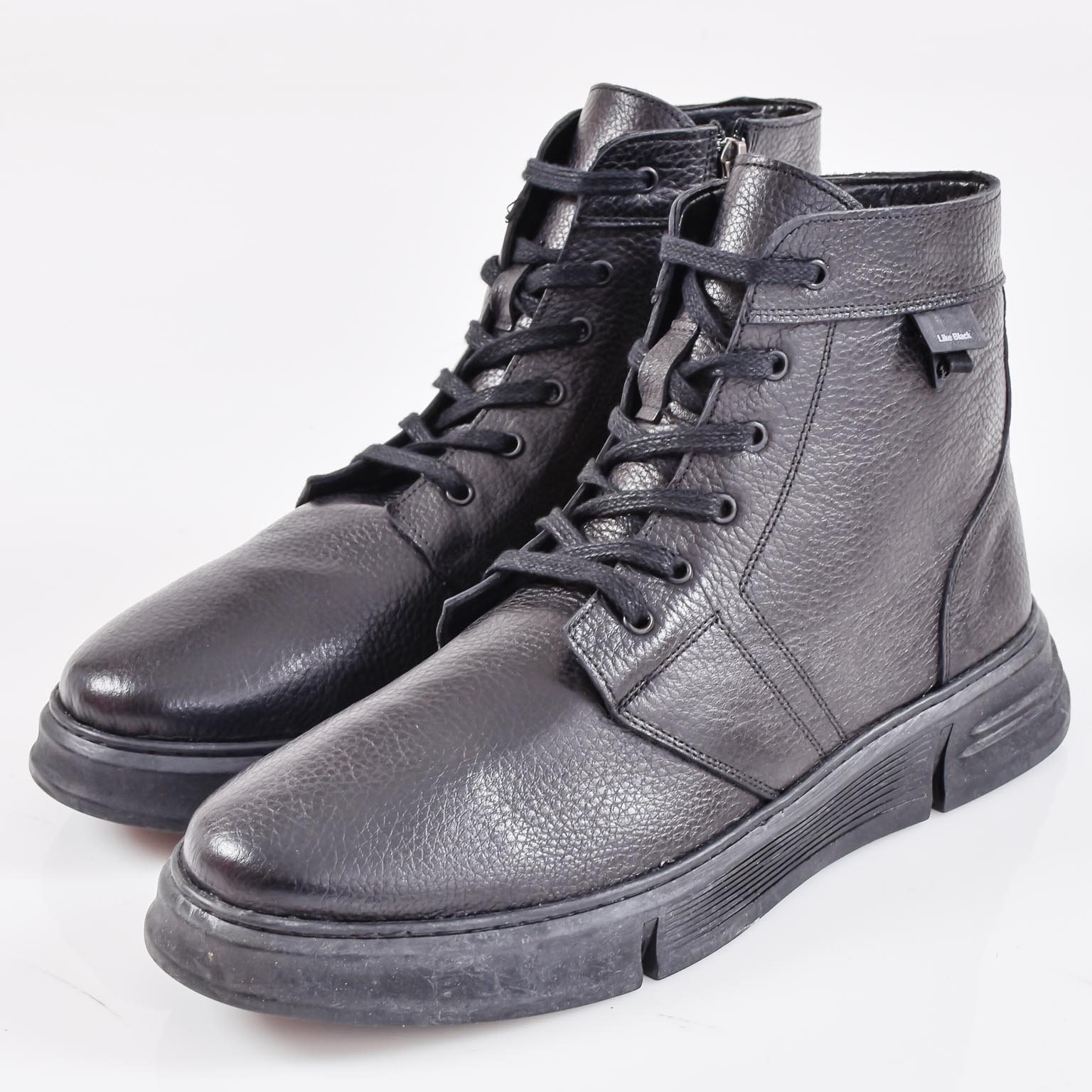 Представяме Ви, мъжки боти с връзки EOBUVKIBG 502-7183 в черен цвят. Лицевата част е изработена от естествена водонепромукаема кожа.Модела е с връзка който улесняват обуването. Вътрешността е от топъл мек хастар. Ходилото е кучуково и не позволява пързаляне по мокри и хлъзгави повърхности за по-добро сцепление и термоизолация на крака. Материал;Водонепропускаема естествена кожа. Ходило;Каучук. Цвят;Черен. Височина на подметката в предната част; 2,5см.Височина на подметката в задната част 4 см. Номерация;40-44 Моделът е стандартен и отговаря на размерите. Тегло на модела 42 размер 480 грама.