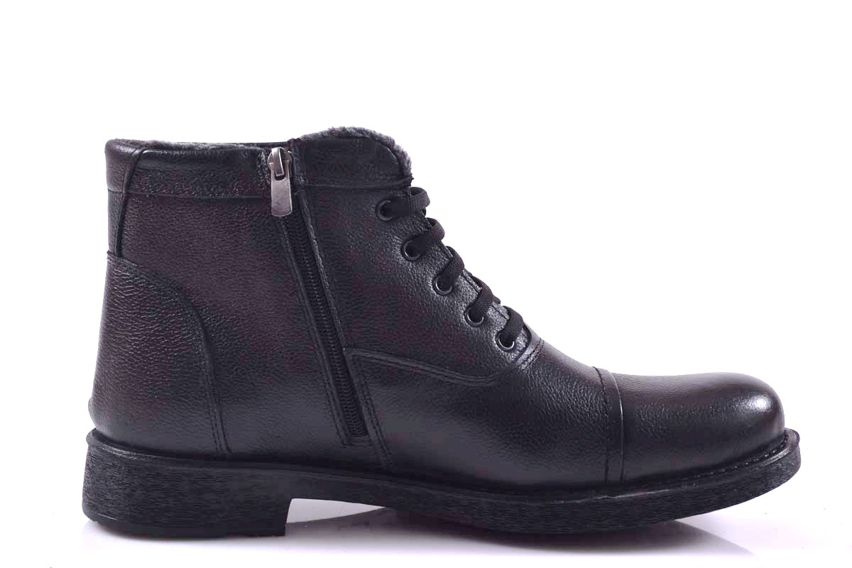 Представяме Ви, мъжки боти с връзка и цип EOBUVKIBG 502-7323 в черен цвят. Лицевата част е изработена от естествена водонепропускаема кожа.Модела е с връзка който улесняват обуването. Вътрешността е от топъл мек хастар. Ходилото е кучуково и не позволява пързаляне по мокри и хлъзгави повърхности за по-добро сцепление и термоизолация на крака. Материал;Водонепропускаема естествена кожа. Ходило;Каучук. Цвят;Черен. Височина на подметката в предната част; 1 см.Височина на подметката в задната част 3 см. Номерация; 41-44 Моделът е стандартен и отговаря на размерите. Тегло на модела 42 размер 510 грама.