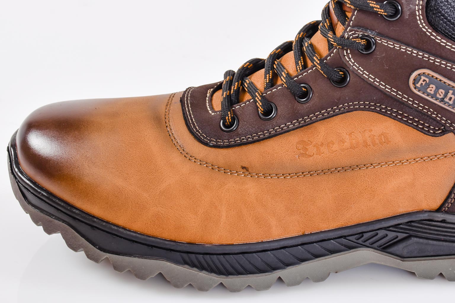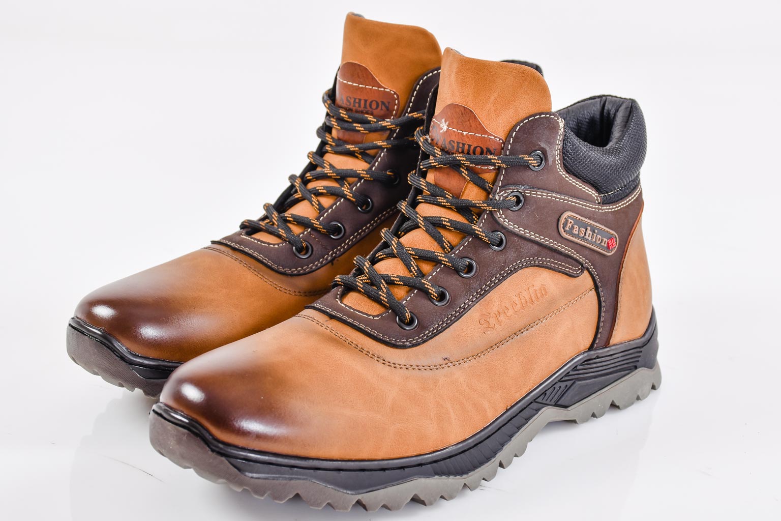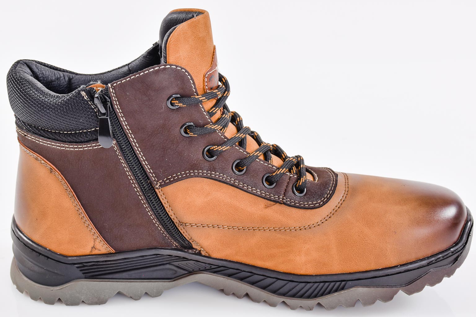 Представяме Ви, нов модел мъжки боти EOBUVKIBG 502-7137 в кафяв цвят. Лицевата част е изработена от водонепропускаема кожа.Модела е с връзка и цип който улесняват обуването. Вътрешността е от топъл мек хастар. Ходилото е каучуково и не позволява пързаляне по мокри и хлъзгави повърхности за по-добро сцепление и термоизолация на крака. Материал; Водонепропускаема кожа. Цвят;Кафяв. Височина на подметката в предната част; 2,5 см.Височина на подметката в задната част; 3 см. Номерация;40-45 Моделът е стандартен и отговаря на размерите. Тегло на модела 42 размер 477 грама.