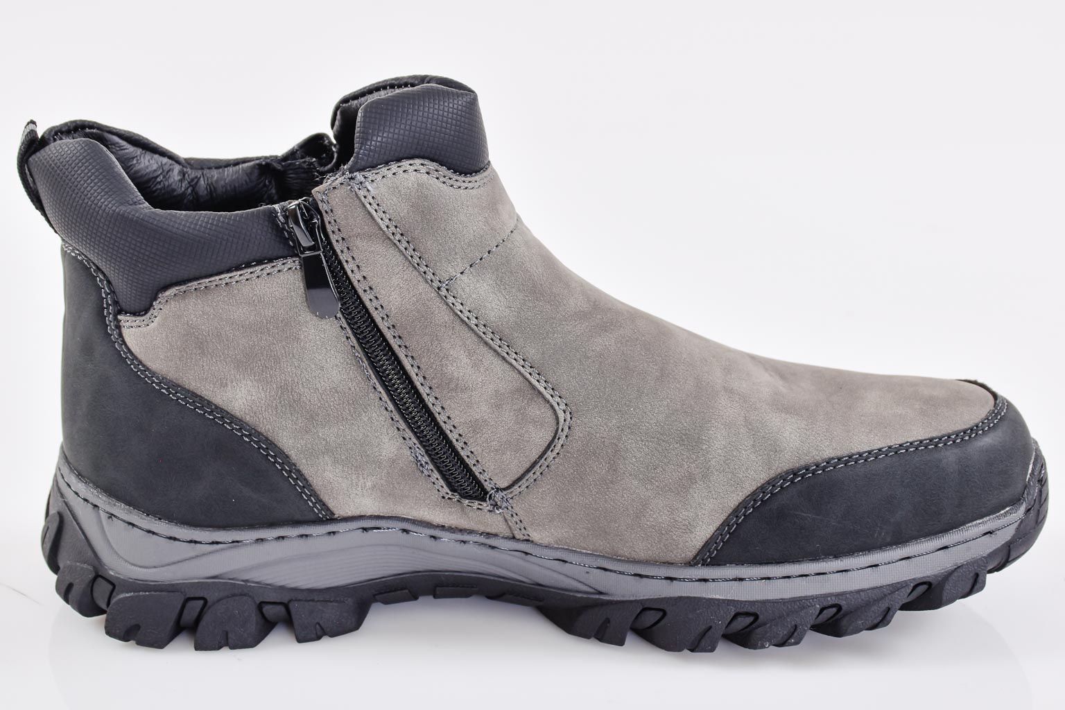 Представяме Ви, нов модел мъжки боти EOBUVKIBG 502-7142 в сив цвят. Лицевата част е изработена от водонепропускаем набук.Модела е с връзка и цип който улесняват обуването. Вътрешността е от топъл мек хастар. Ходилото е каучуково и не позволява пързаляне по мокри и хлъзгави повърхности за по-добро сцепление и термоизолация на крака. Материал; Водонепропускаем набук. Цвят;Сив. Височина на подметката в предната част; 2 см.Височина на подметката в задната част; 3,5 см. Номерация;40-45 Моделът е стандартен и отговаря на размерите. Тегло на модела 42 размер 390 грама.