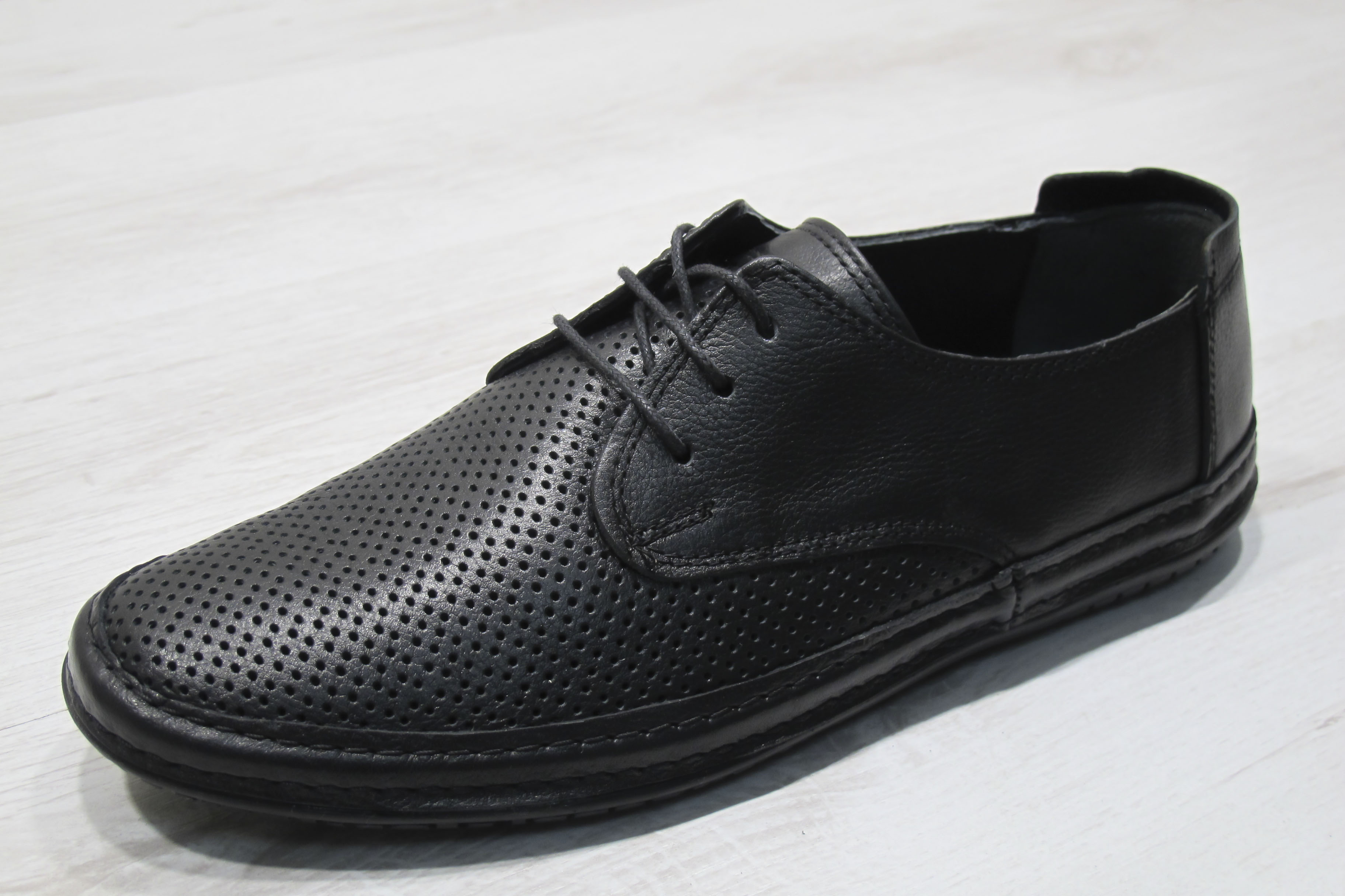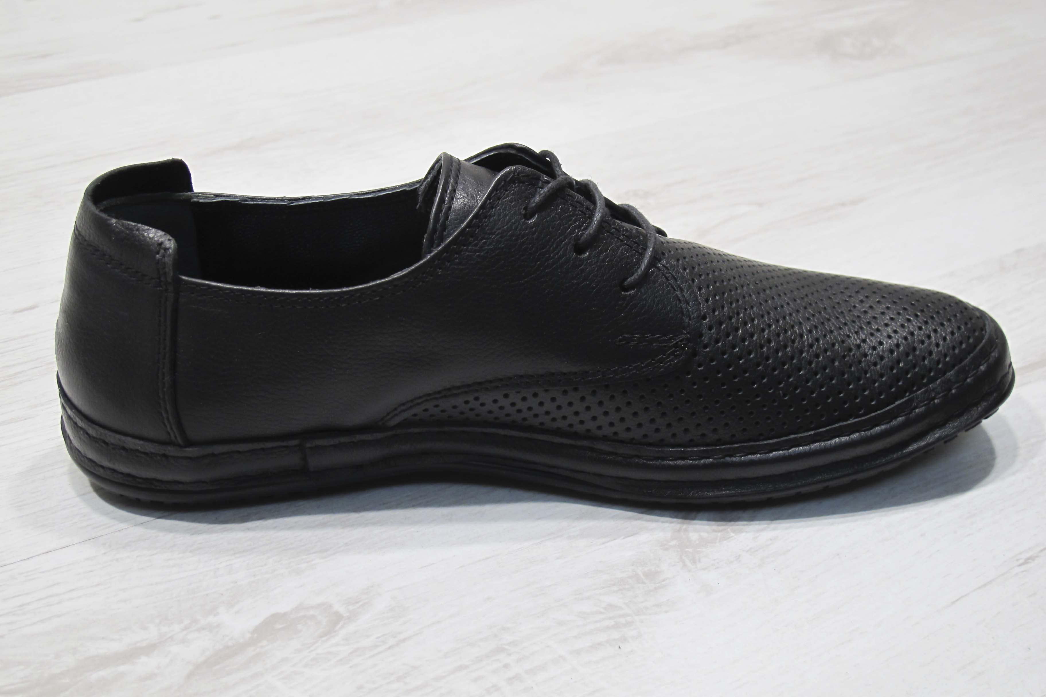 Мъжки черни обувки изработени от естествена кожа. Удобството и актуалният им черен цвят ги прави подходящи за ежедневието .