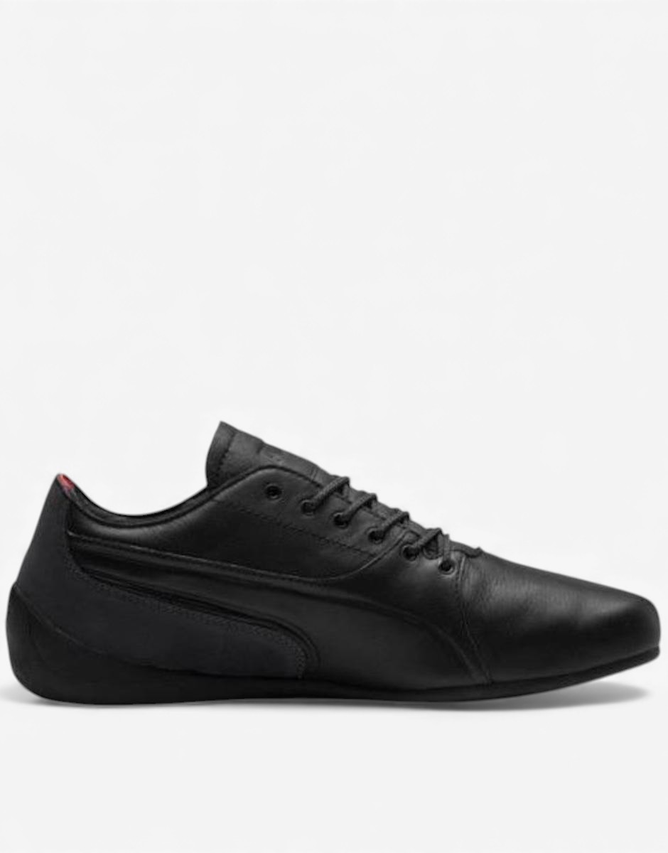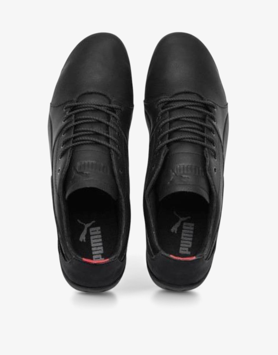 Уникални мъжки маратонки PUMA x Ferrari в черно, от серията Drift Cat, за всички любители на високите скорости. Обувките са произведени специално за Ferrari. Изработени изцяло от естествена кожа, притежават стелка ecoOrtoLite за повече комфорт, циркулация на въздух и имат антибактериална функция. Характерната емблема на Ferrari се откроява отстрани на маратонката. Моделът притежава специални декоративни шевове и подсилена пета. Обувките перфектно се съчетават с дънки или спортен панталон.
