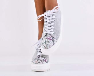 Дамски сникърси естествена кожа сиви EOBUVKIBG #502-6313