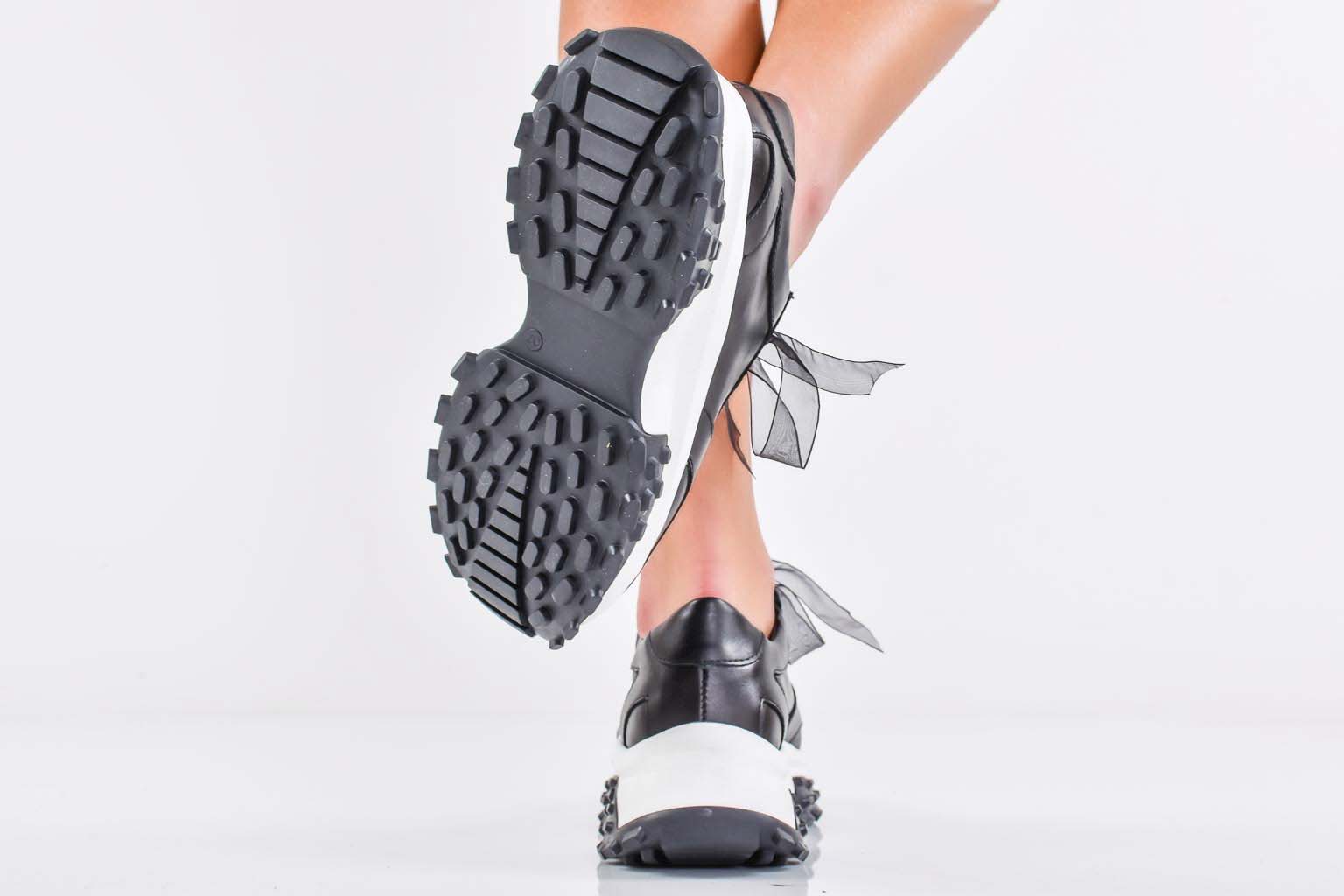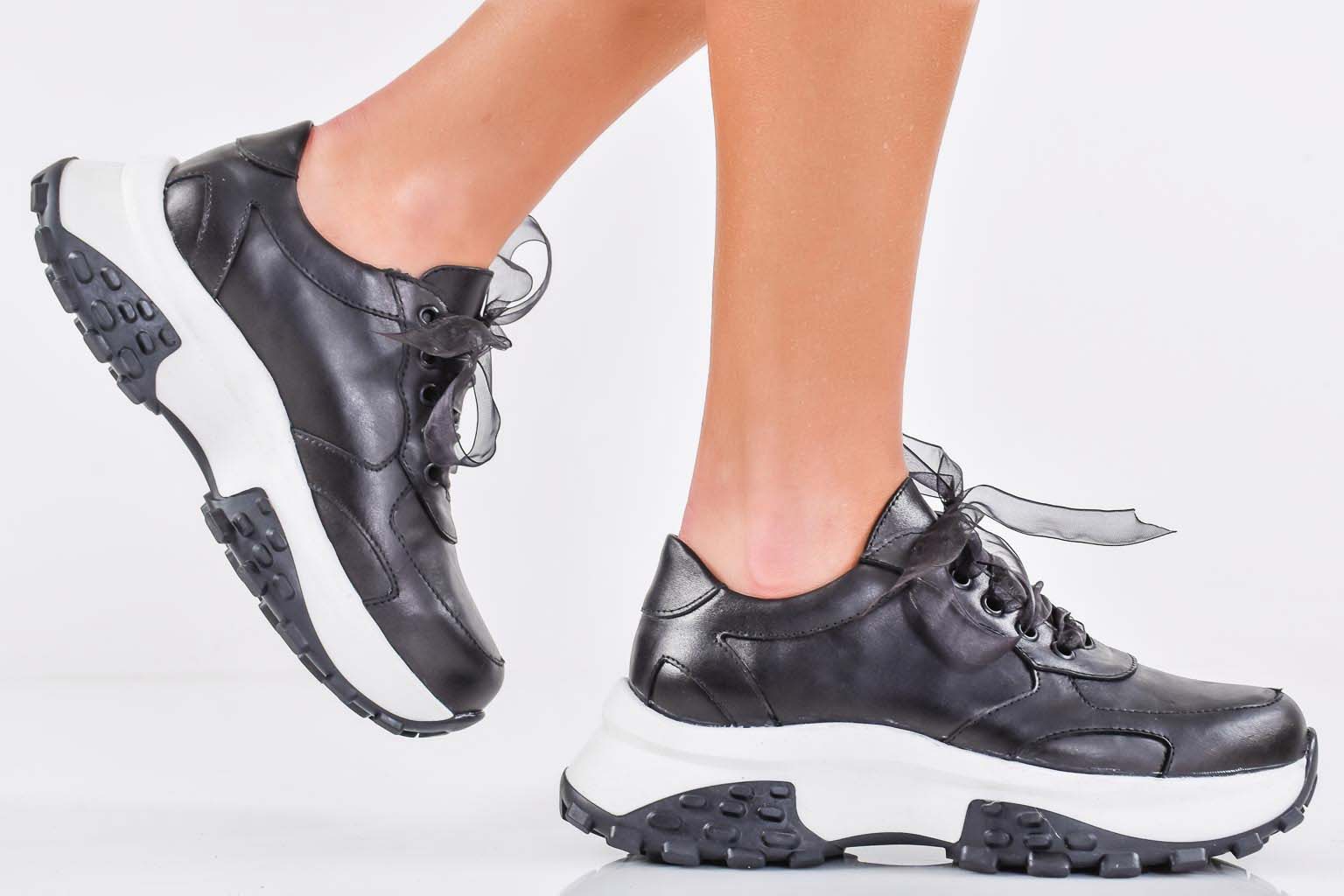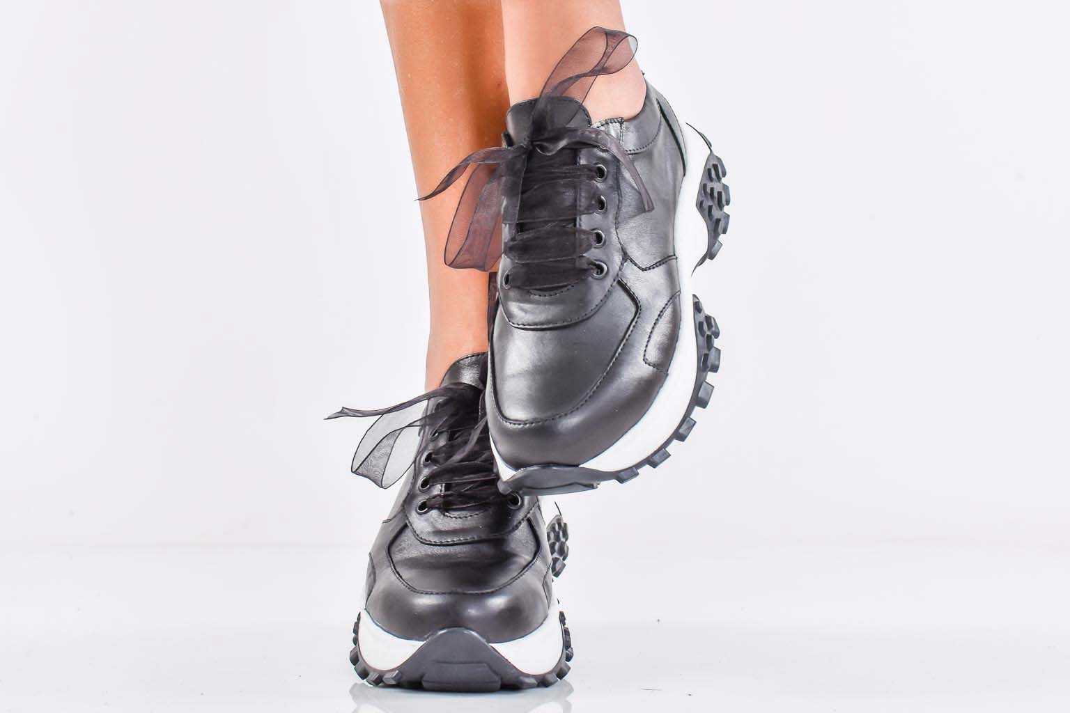 Дамски сникърси естествена кожа черни EOBUVKIBG