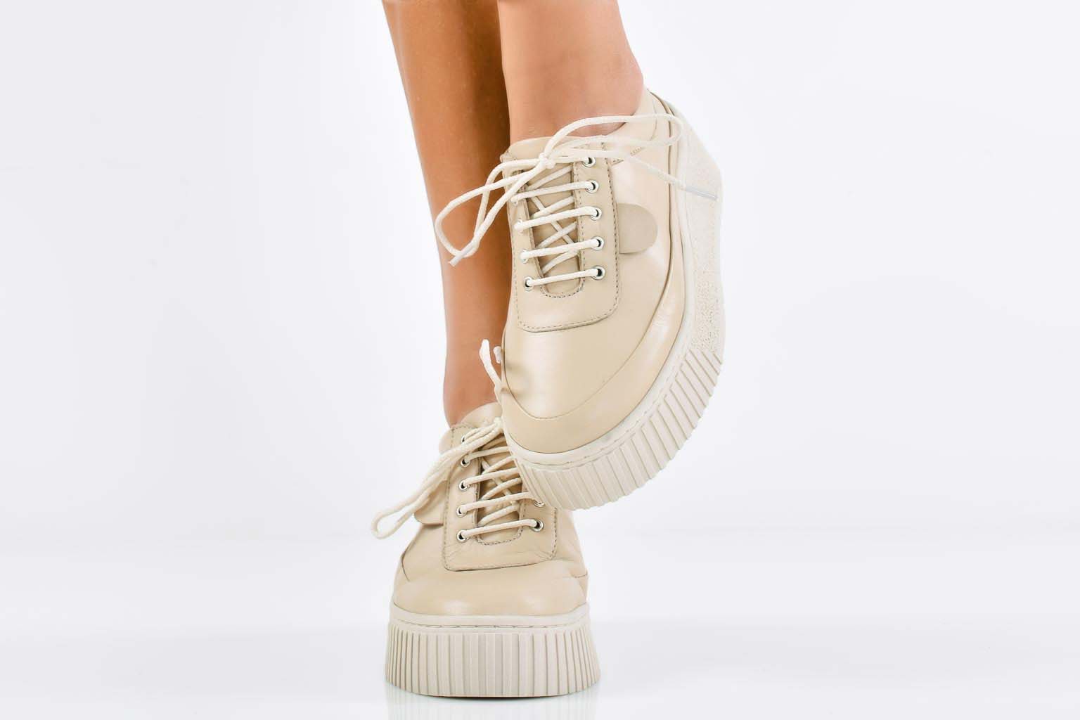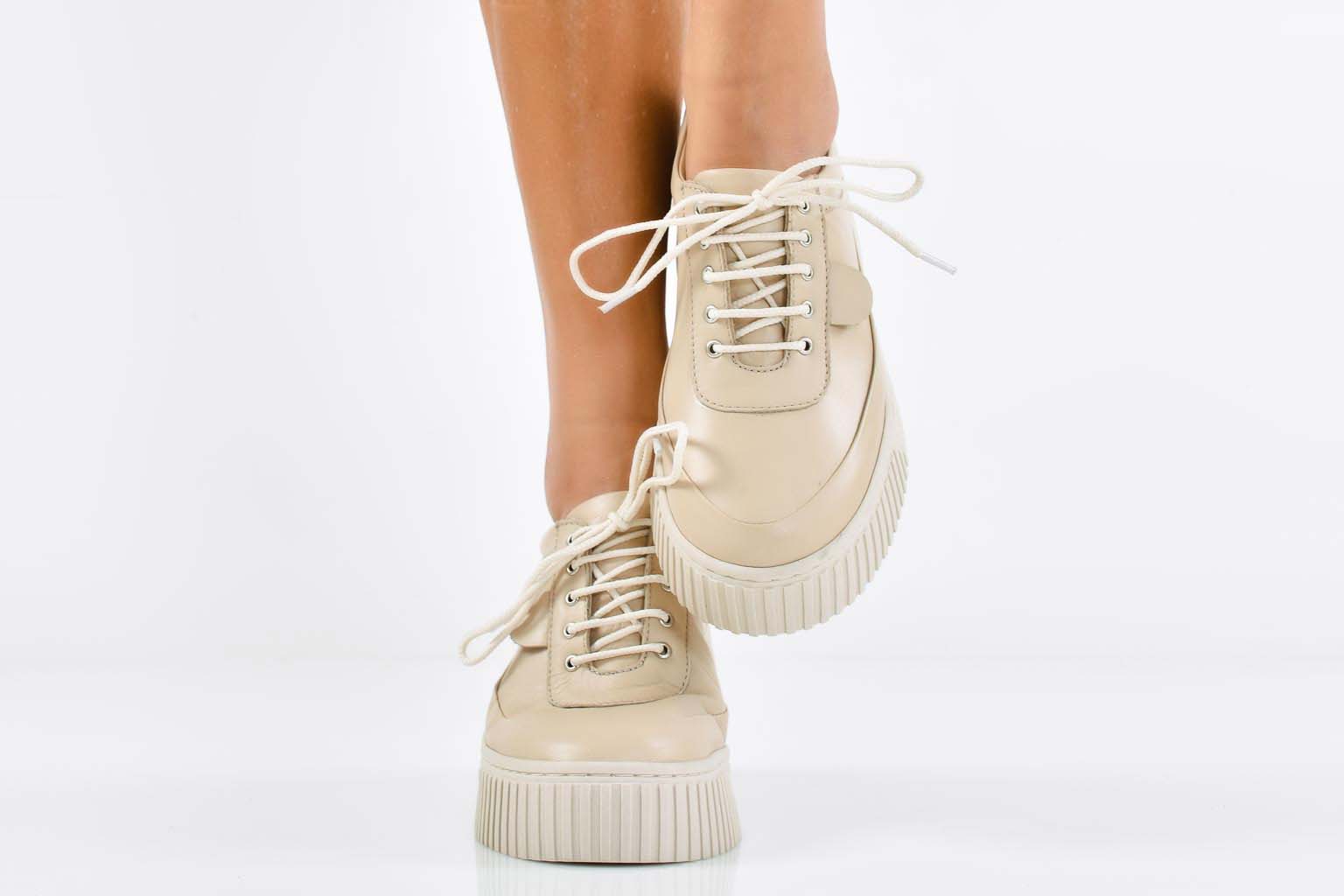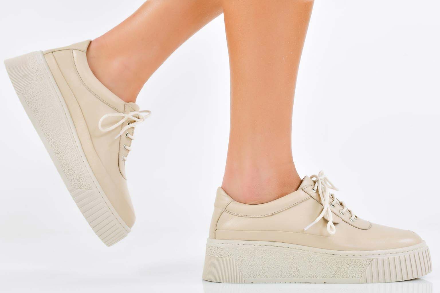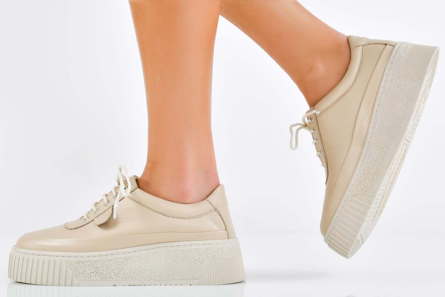 Дамски сникърси естествена кожа бежови EOBUVKIBG