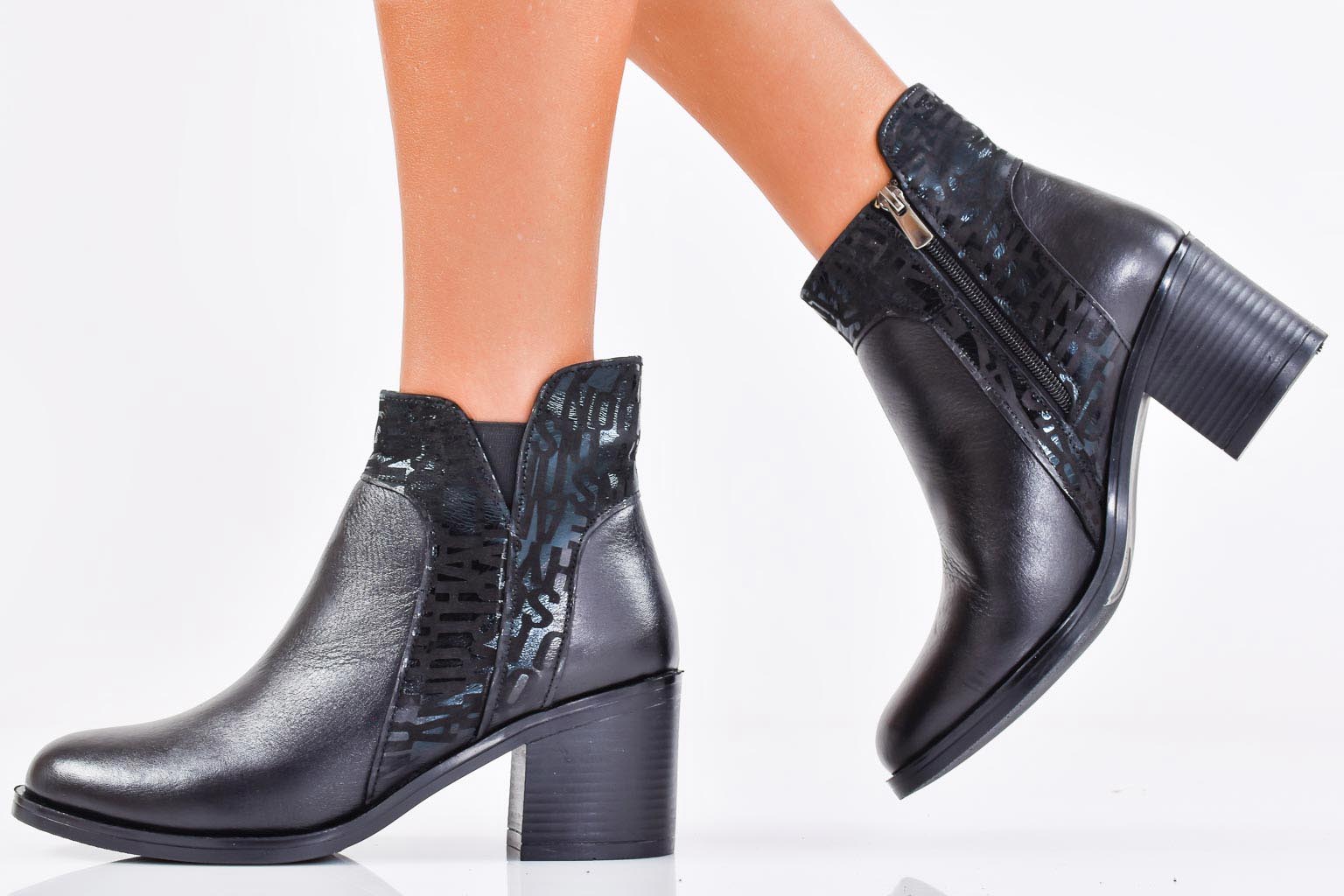 Дамски елегантни боти естествена кожа черни EOBUVKIBG