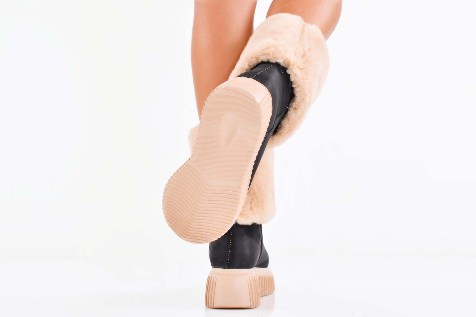 Дамски ботуши естествен велур черни EOBUVKIBG #502-7231