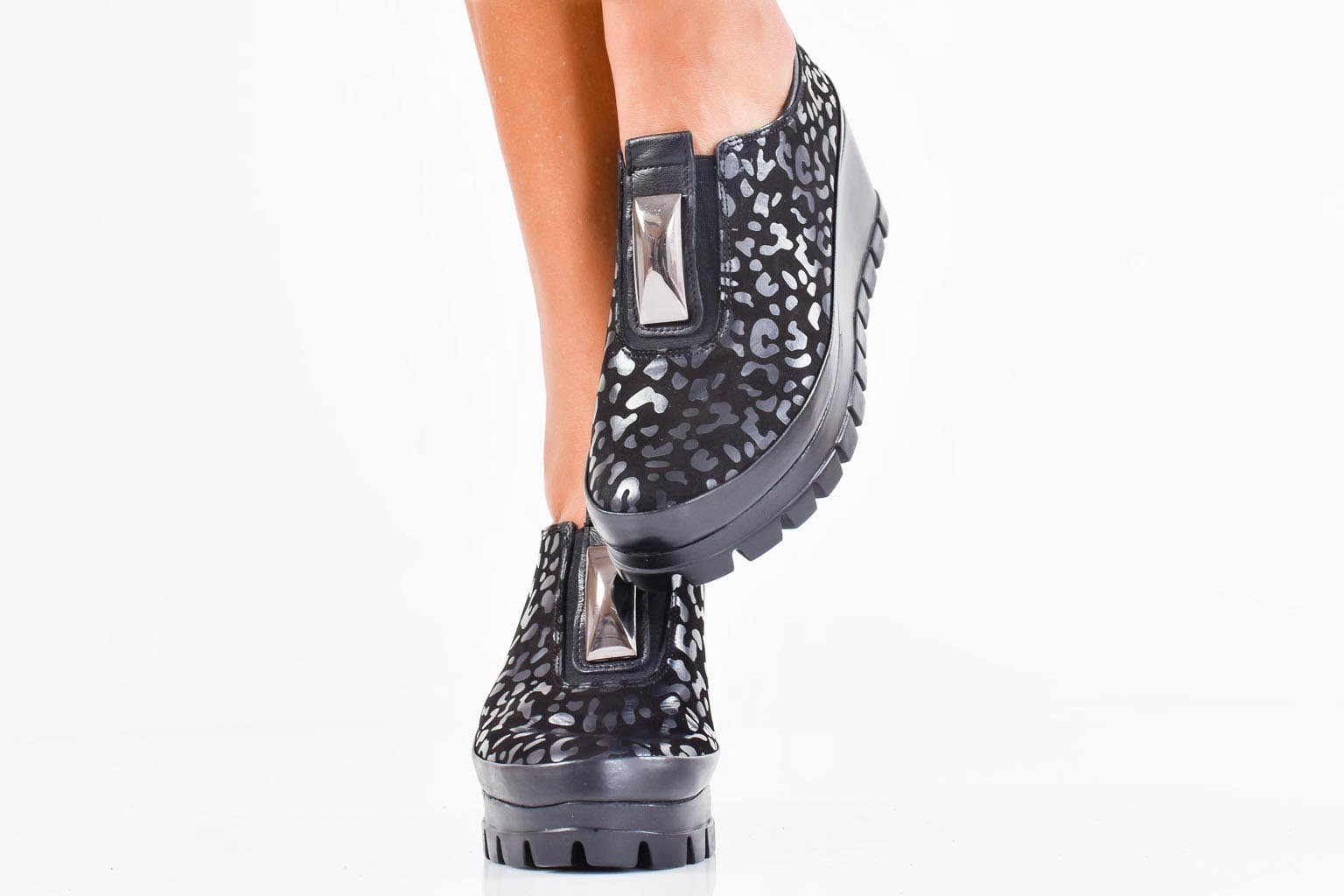Дамски сникърси естествена кожа черни EOBUVKIBG
