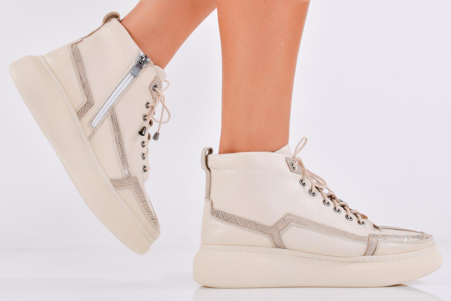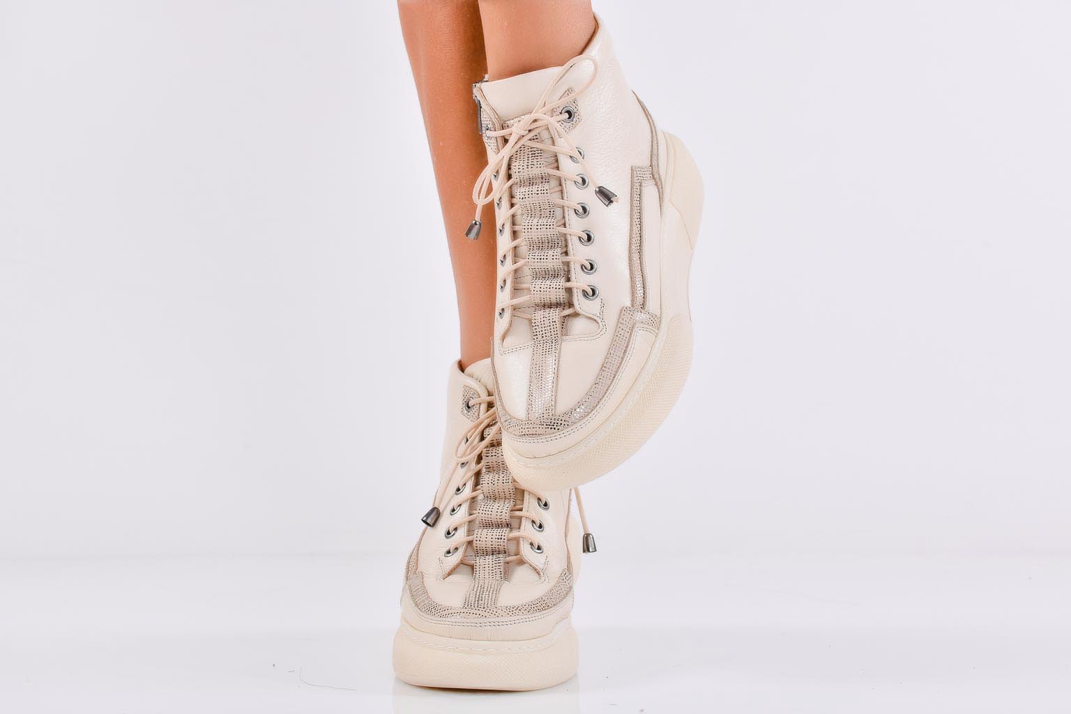 Дамски боти естествена кожа бежови EOBUVKIBG #502-6844