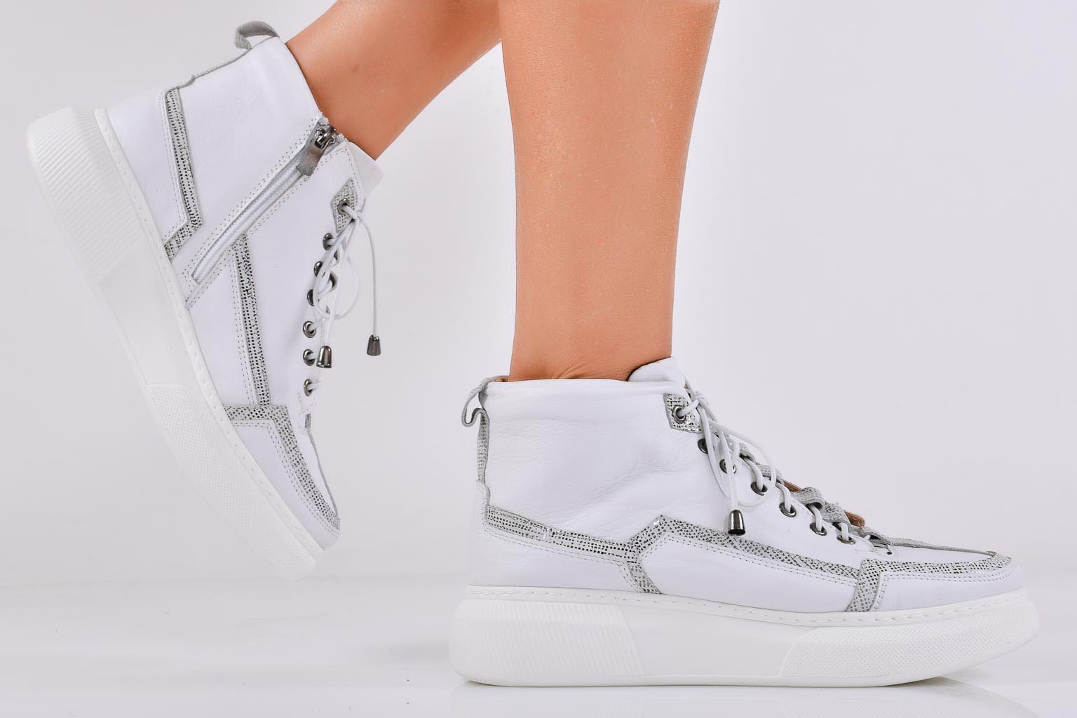 Дамски боти естествена кожа бели EOBUVKIBG #502-6845