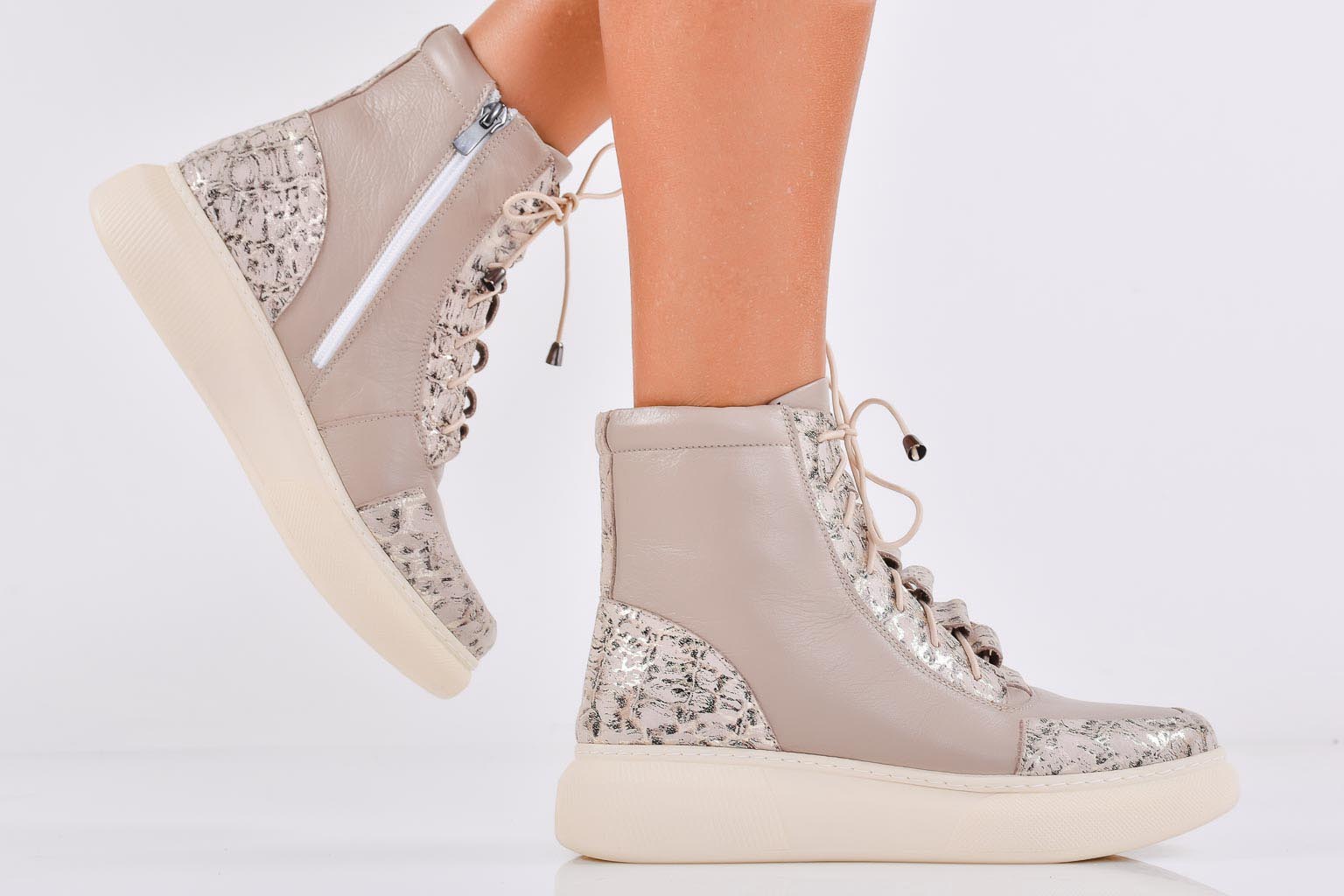 Дамски боти естествена кожа бежови EOBUVKIBG #502-6850