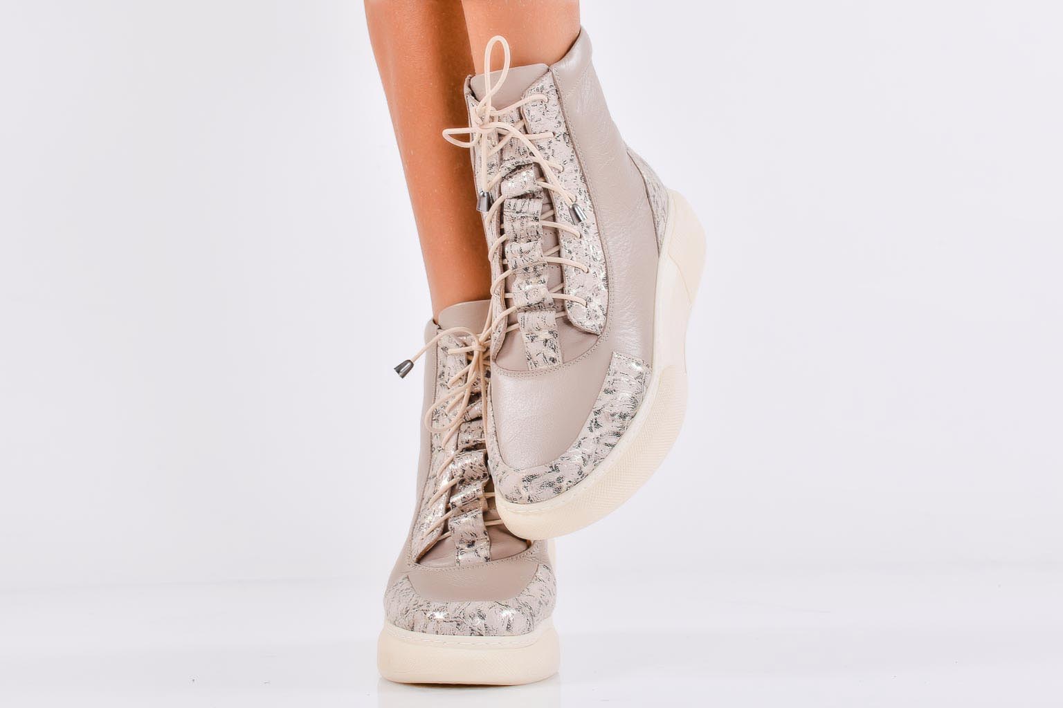 Дамски боти естествена кожа бежови EOBUVKIBG